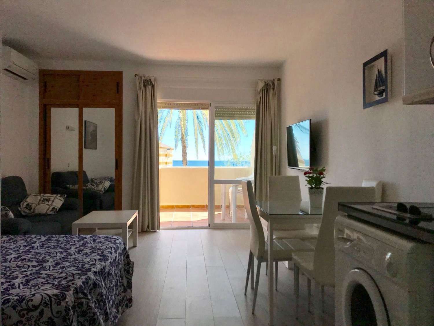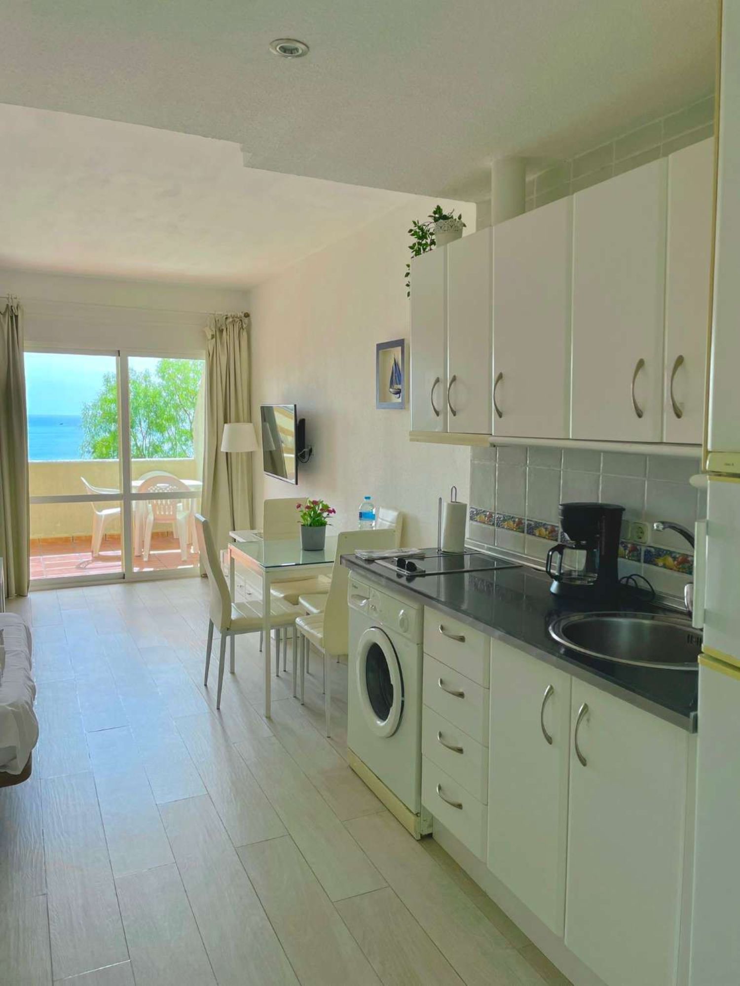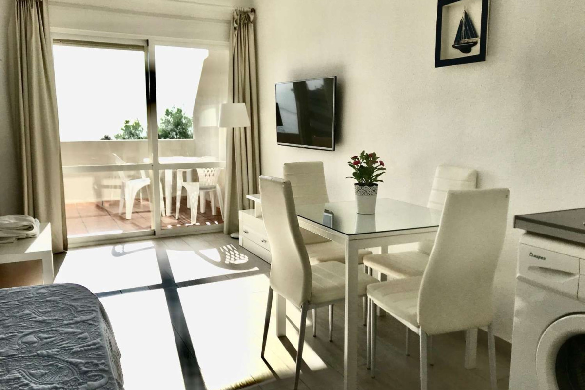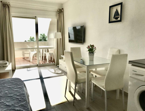 Ref. 2211. - SE ALQUILA BONITO ESTUDIO DESDE EL 1/03/2024 - 31/05/2024 EN PRIMERA LÍNEA DE PLAYA BENALMÁDENA COSTATiene 50m2 construidos, orientacion sur, 3ª planta, aire acondicionado frío / calor. Parking no asignado.La vivienda consta de salón dormitorio, con cocina americana, frigorífico grande, lavadora, A/C, TV, 1 baño y terraza con vistas al mar. Situado en uno de los complejos más demandados de Benalmádena. Cuenta con todas las facilidades: gimnasio, spa, supermercado y tiendas interiores, 4 piscinas para adultos y para los niños con toboganes, áreas de hamacas, 10.000 metros de jardines verdes con lagos y recepción 24 horas, supermercado y tiendas interiores. Se encuentra en una de las mejores zonas de Benalmádena. Enfrente del Parque de la Paloma, enfrente de parada de bus y taxis, playa y paseo marítimo a 5 minutos de pie. , supermercados, farmacia, gran variedad y oferta gastronómica, todo sin necesidad de coche.Ideal para teletrabajar o pasar unos meses de vacaciones aprovechando nuestro buen clima en la Costa del Sol. Se acepta una mascota pequeña educada.Precio 1/03/2024 - 31/05/2024: 760€ / mes agua y wifi incluido + luz aparte + fianza. Imprescindible acreditar solvencia económica.