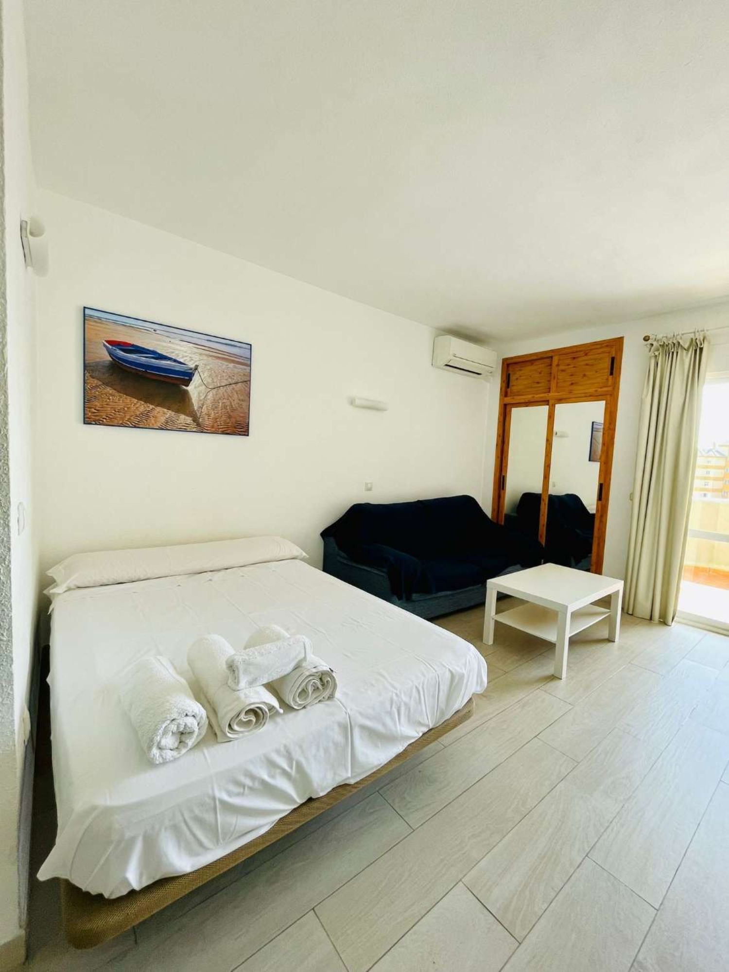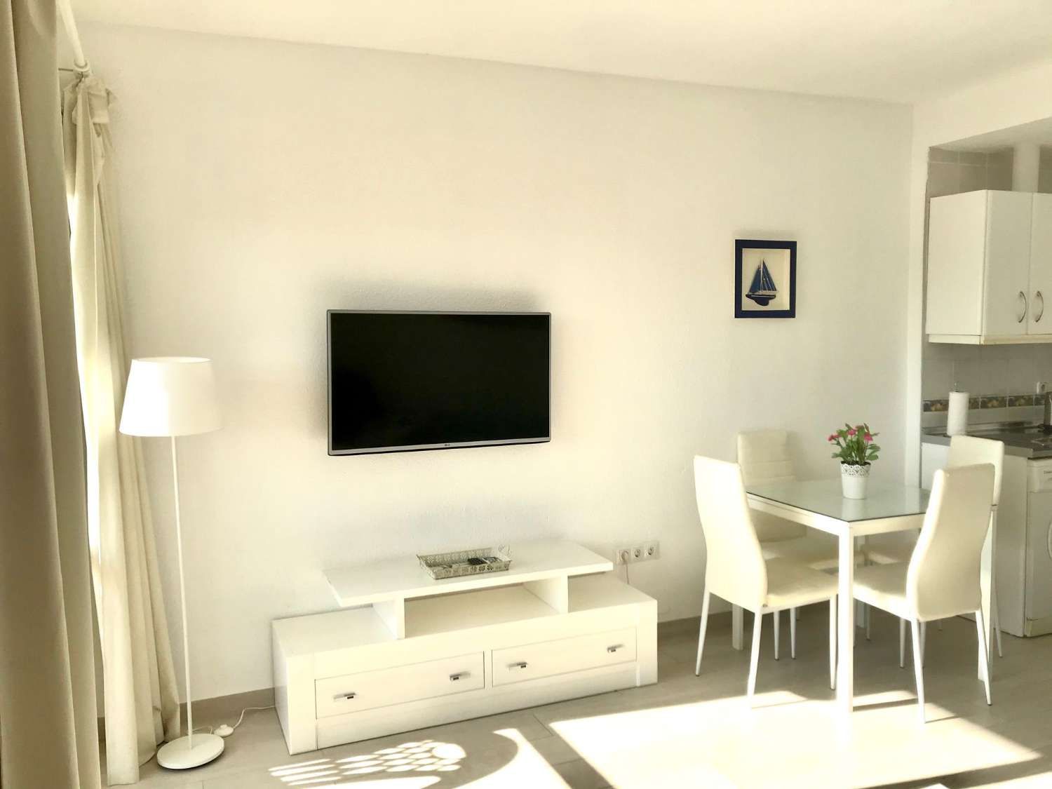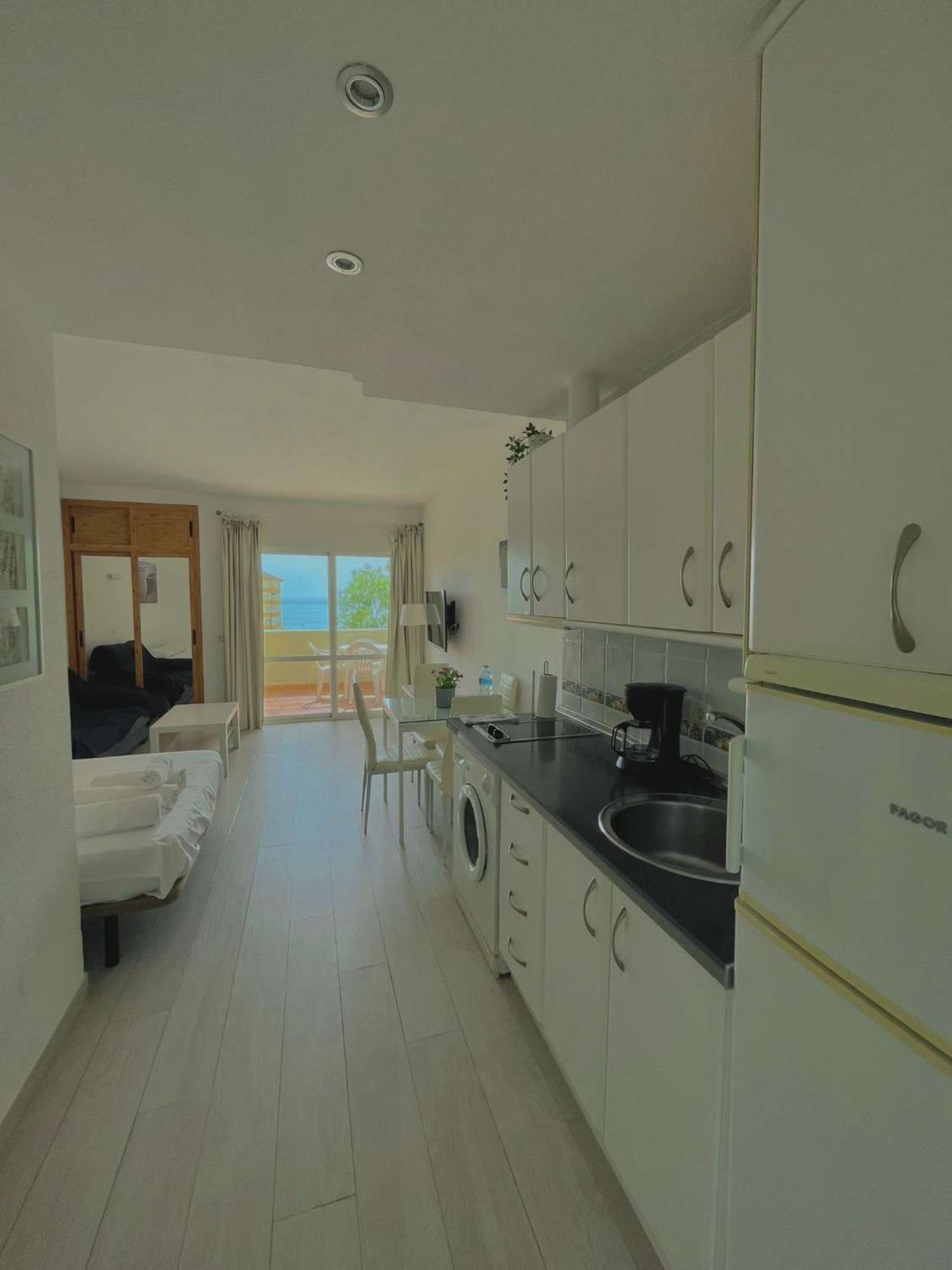 Ref. 2211. - SE ALQUILA BONITO ESTUDIO DESDE EL 1/03/2024 - 31/05/2024 EN PRIMERA LÍNEA DE PLAYA BENALMÁDENA COSTATiene 50m2 construidos, orientacion sur, 3ª planta, aire acondicionado frío / calor. Parking no asignado.La vivienda consta de salón dormitorio, con cocina americana, frigorífico grande, lavadora, A/C, TV, 1 baño y terraza con vistas al mar. Situado en uno de los complejos más demandados de Benalmádena. Cuenta con todas las facilidades: gimnasio, spa, supermercado y tiendas interiores, 4 piscinas para adultos y para los niños con toboganes, áreas de hamacas, 10.000 metros de jardines verdes con lagos y recepción 24 horas, supermercado y tiendas interiores. Se encuentra en una de las mejores zonas de Benalmádena. Enfrente del Parque de la Paloma, enfrente de parada de bus y taxis, playa y paseo marítimo a 5 minutos de pie. , supermercados, farmacia, gran variedad y oferta gastronómica, todo sin necesidad de coche.Ideal para teletrabajar o pasar unos meses de vacaciones aprovechando nuestro buen clima en la Costa del Sol. Se acepta una mascota pequeña educada.Precio 1/03/2024 - 31/05/2024: 760€ / mes agua y wifi incluido + luz aparte + fianza. Imprescindible acreditar solvencia económica.