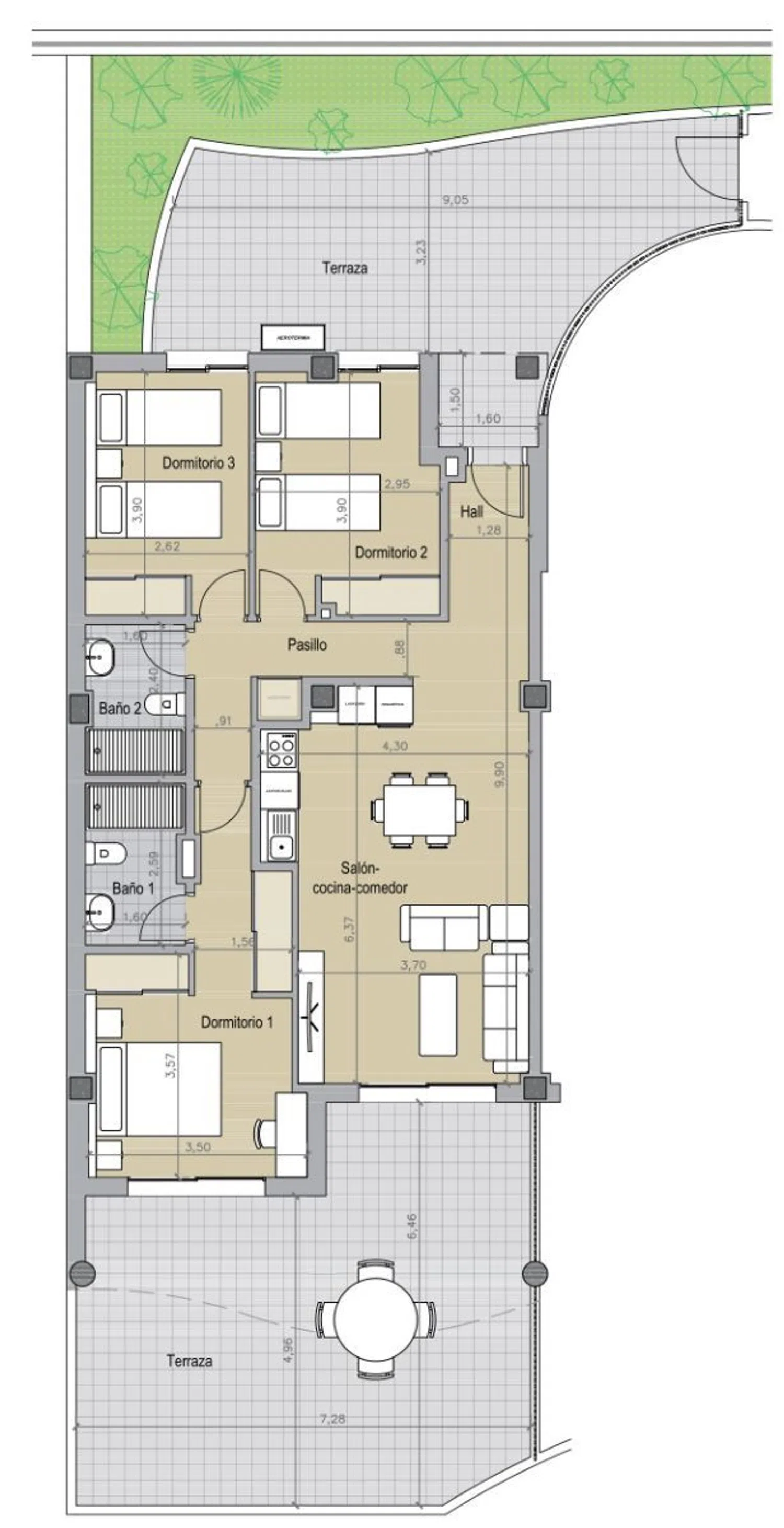 Hábitat Mediterránea le ofrece 35 pisos y áticos de 2, 3 y 4 habitaciones donde el concepto de slow living se convertirá en el centro de su estilo de vida. Sus zonas de ocio para niños y adultos harán que no quieras ir a ningún otro lugar. Este increíble piso (primera planta) cuenta con una superficie construida total de 129'71 m², distribuidos en cocina-salón-comedor, tres dormitorios, dos baños, disfrutando el dormitorio principal de baño en suite. Tendrá acceso a dos terrazas, la que conecta con la entrada y la que conecta con el salón y dormitorio principal, 48`36 m² de terraza descubierta y 22`30 m² cubierta. Recinto privado delimitado mediante murete perimetral. Amplia zona ajardinada con riego automático, luminarias y mobiliario urbano. Área acotada con piscina para adultos, cloración salina e iluminación sumergida. Conjunto de buzones individuales por vivienda La cocina se entregará completamente amueblada, instalándose fregadero de acero inoxidable, placa de inducción, campana extractora, horno eléctrico, lavadora, frigorífico y lavavajillas. Las encimeras serán de cuarzo compacto, material de gran dureza, resistencia, no absorción y durabilidad. Se ubica en una zona tranquila de Benalmádena, a solo 5 minutos de la playa y a 15 minutos de Málaga, ciudad que cada vez enamora a más visitantes gracias a su oferta de ocio, cultura, eventos... Para desplazarse, tiene a un paso la estación de Cercanías Benalmádena-Arroyo de la Miel. Benalmádena ofrece mil planes para hacer y un tesoro escondido que poca gente conoce. Puede subir hasta la montaña en el teleférico y bajar a pie, disfrutar de la tranquilidad de las playas de Carvajal o de Benalnatura, visitar la singular arquitectura del Castillo de Colomares o tomar un barco al atardecer en Puerto Marina. Usted elige su estado de ánimo del día. ¿Prefiere planes en familia? Los niños lo pasarán en grande entre animales en el Mariposario de Benalmádena, en Sea Life, en Selwo Marina o en el famoso Parque de la Paloma. La Costa del Sol también es conocida como la Costa del Golf, con más de 40 campos para elegir. La gran mayoría de ellos están a menos de una hora en coche. Con el fácil acceso a la autovía A-7 y la autopista AP-7 desde Nexus Residences, llegar será mucho más sencillo. ¿Se lo va a perder? ***Las viviendas se entregan sin amueblar, excepto la cocina ** El IVA no está incluido en el precio de venta FORMA DE PAGO: - RESERVA/DEPÓSITO: 6.000€. - 30% al firmar el contrato de compraventa. - 70% al firmar la escritura. - La fecha estimada de entrega es en agosto de 2025. El mejor lugar para disfrutar de la privacidad de su hogar y relajarse en un ambiente saludable y tranquilo. Si siempre quiso vivir en una zona tranquila y relajada, con la comodidad de tener todo a su alcance y la ventaja de disfrutar de los beneficios del clima mediterráneo y del Sol, ahora es su oportunidad de adquirir su rincón soñado. ¿Lo va a dejar escapar? AVISO: la información que contiene este anuncio, puede estar sujeta a errores u omisiones. Las propiedades pueden estar sujetas a cambio de precio, venta o retirada del mercado. Para más información no dude en contactar con nosotros o visitando nuestra página web CONTÁCTENOS, ESTAREMOS ENCANTADOS DE ATENDERLE. Nuestros honorarios de agencia ya están incluidos en el precio de venta por lo que no tendrá que abonar ningún tipo de gastos por gestión o asesoramiento inmobiliario y que en cumplimiento del Decreto de la Junta de Andalucía 218/2005 del 11 de Octubre, se informa que los gastos de notario, registro, ITP y otros gastos inherentes a la compraventa no están incluidos en el precio.