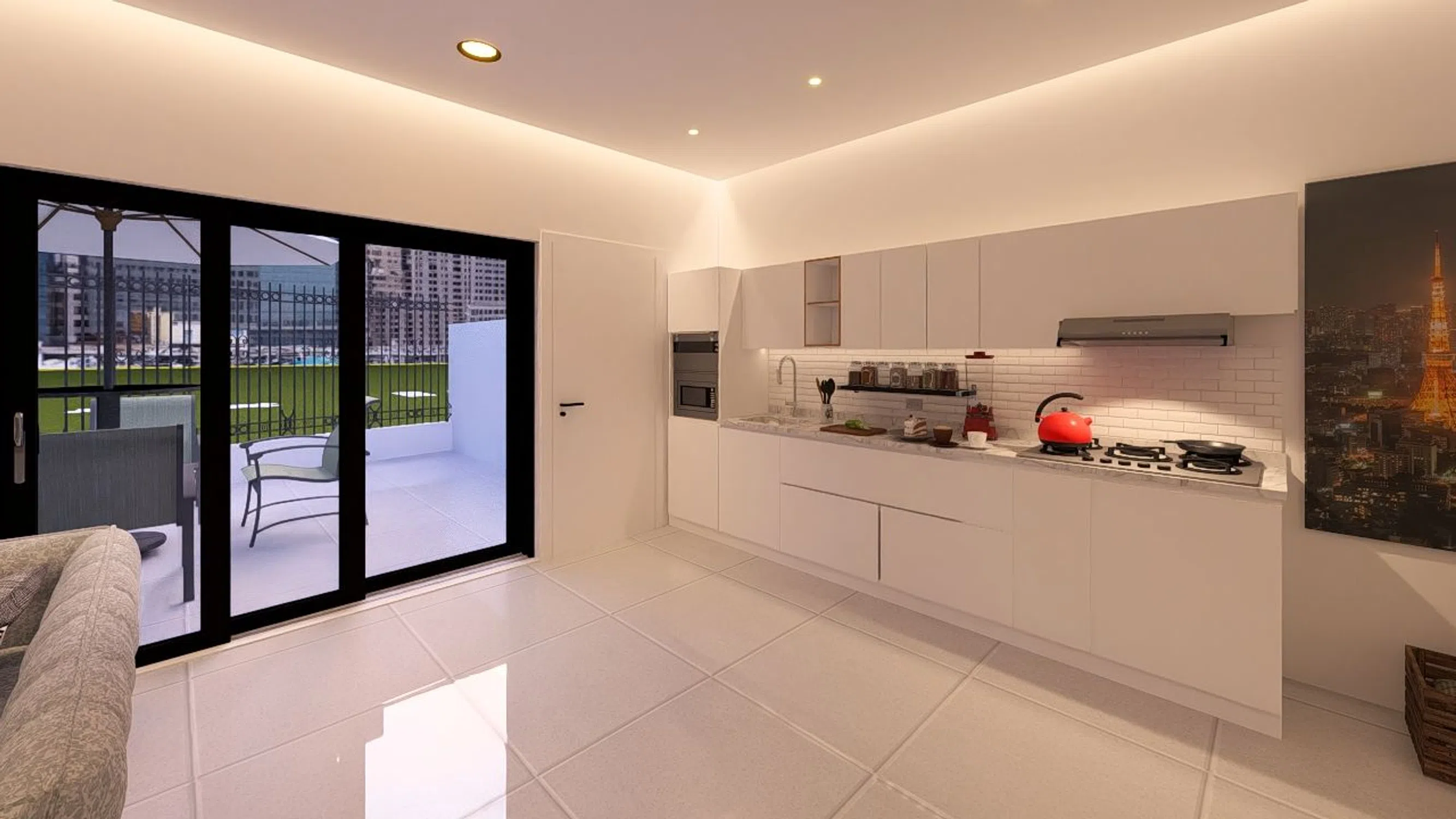 - Kitchen equipped with integrated appliances