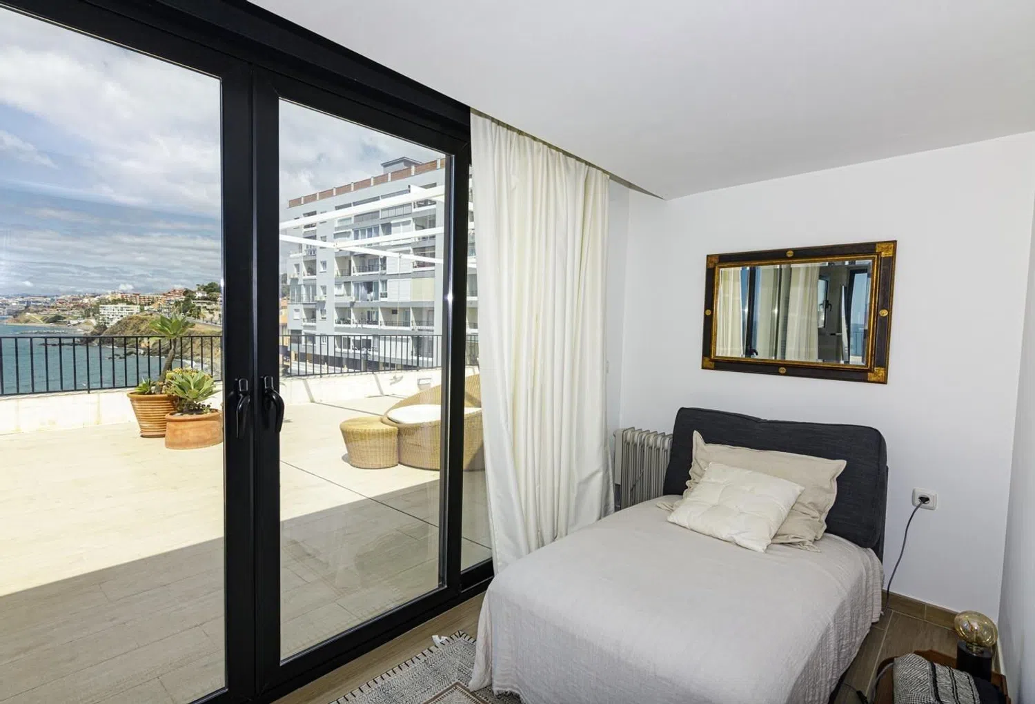 Descubre el lujo de vivir frente al mar: Ático en primera línea de playa Sumérgete en la elegancia y el confort de este impresionante ático ubicado en la tercera planta del edificio y con acceso directo desde la calle al tratarse de una edificación a pie de playa con un gran desnivel, frente al mar, diseñado para ofrecer una experiencia de vida única. Con una superficie útil de 137 m², este ático combina amplios espacios interiores con una espectacular terraza de 144 m², brindándote vistas panorámicas inigualables del Mediterráneo y la Costa de Fuengirola. Ubicación Privilegiada: Situado en la última planta, en primera línea de playa, este ático ofrece un entorno privilegiado donde la brisa marina y el sonido de las olas se convierten en parte de tu vida diaria. Espacios Amplios y Elegantes: Superficie útil: 137 m² Dormitorios: 4, diseñados para maximizar el confort y la privacidad. Baños: 3 de los cuales 2 completos y con acabados de alta calidad. A/C frio calor, doble acristalamiento con bloqueo UV, descalcificadora. El salón comedor es un espacio amplio y luminoso, ideal para relajarte y disfrutar de momentos en familia o con amigos. Cocina completa amueblada y equipada, ofrece un diseño funcional y elegante. Terraza Panorámica: La joya de esta propiedad es su terraza de 144 m², que ofrece vistas panorámicas al mar. Este espacio es perfecto para disfrutar de cenas al aire libre, relajarte con una copa de vino o simplemente contemplar el atardecer. La urbanización ofrece jardines y 2 piscinas comunitarios. Información de interés: Gastos Comunitarios: 158 € mensuales, que incluyen el mantenimiento de las zonas comunes y los servicios compartidos. Impuesto sobre Bienes Inmuebles (IBI): 822 € anuales. Este ático no solo ofrece un espacio de vida excepcional, sino también la oportunidad de formar parte de una comunidad que valora el estilo de vida junto al mar. No pierdas la oportunidad de hacer de este espectacular ático tu nuevo hogar. Para más información o para programar una visita, contáctanos hoy mismo y descubre por qué este ático es la opción perfecta para quienes buscan lujo y confort frente al mar. Les informamos que se encuentran ya incluidos en el precio de venta nuestros honorarios de agencia, por lo cual no debe abonar ningún tipo de gasto por gestión ni asesoramiento inmobiliario. Y que en cumplimiento del Decreto de la Junta de Andalucía 218/2005 del 11 de Octubre, se informa que los gastos de notario, registro, ITP y otros gastos inherentes a la compraventa no están incluidos en el precio. La información facilitada es orientativa, no tiene carácter vinculante y carece de valor contractual. Dicha información puede haber sufrido modificaciones que aún no han sido incorporadas. Le sugerimos se ponga en contacto con la empresa para obtener los últimos datos y/o confirmar los aquí expuestos.