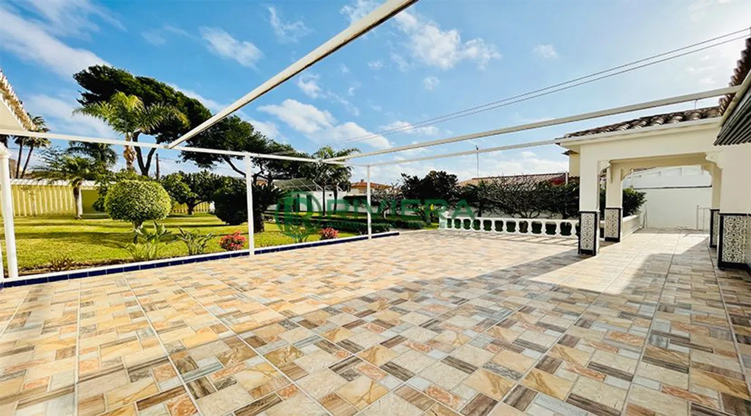 Villa a tan solo dos pasos de la playa y Puerto Marina. Se sitúa en una parcela de 1.100 m2 aprox. y con una superficie construida de 250 m2 aprox. y se distribuye en: hall de entrada, gran salón-comedor, cocina con despensa, 1 baño, 4 dormitorios dobles y 2 de ellos con baño en suite. Dispone de trastero, lavadero y patio interior. Ventanas de PVC con cristales de seguridad. En el exterior, cuenta con grandes terrazas, una gran piscina cubierta y climatizada por placas solares. Jardín muy bonito y cuidado, con zona de huerto. Garaje cerrado para 1 coche y espacio abierto para más coches. Cerca de todo tipo de servicios.