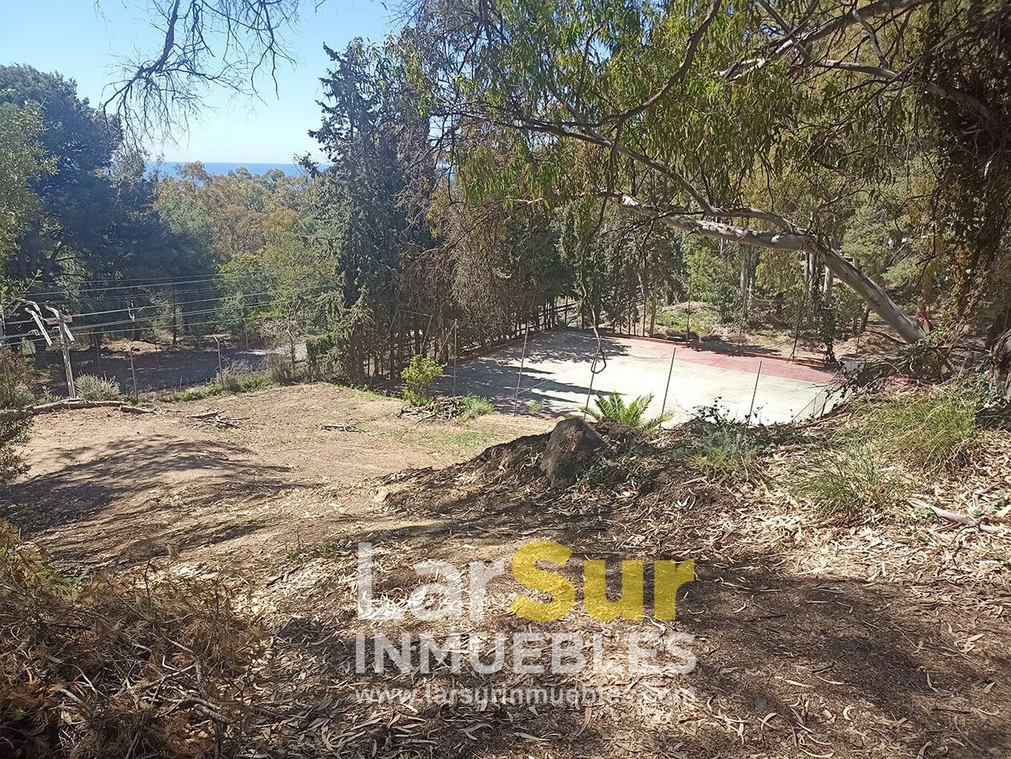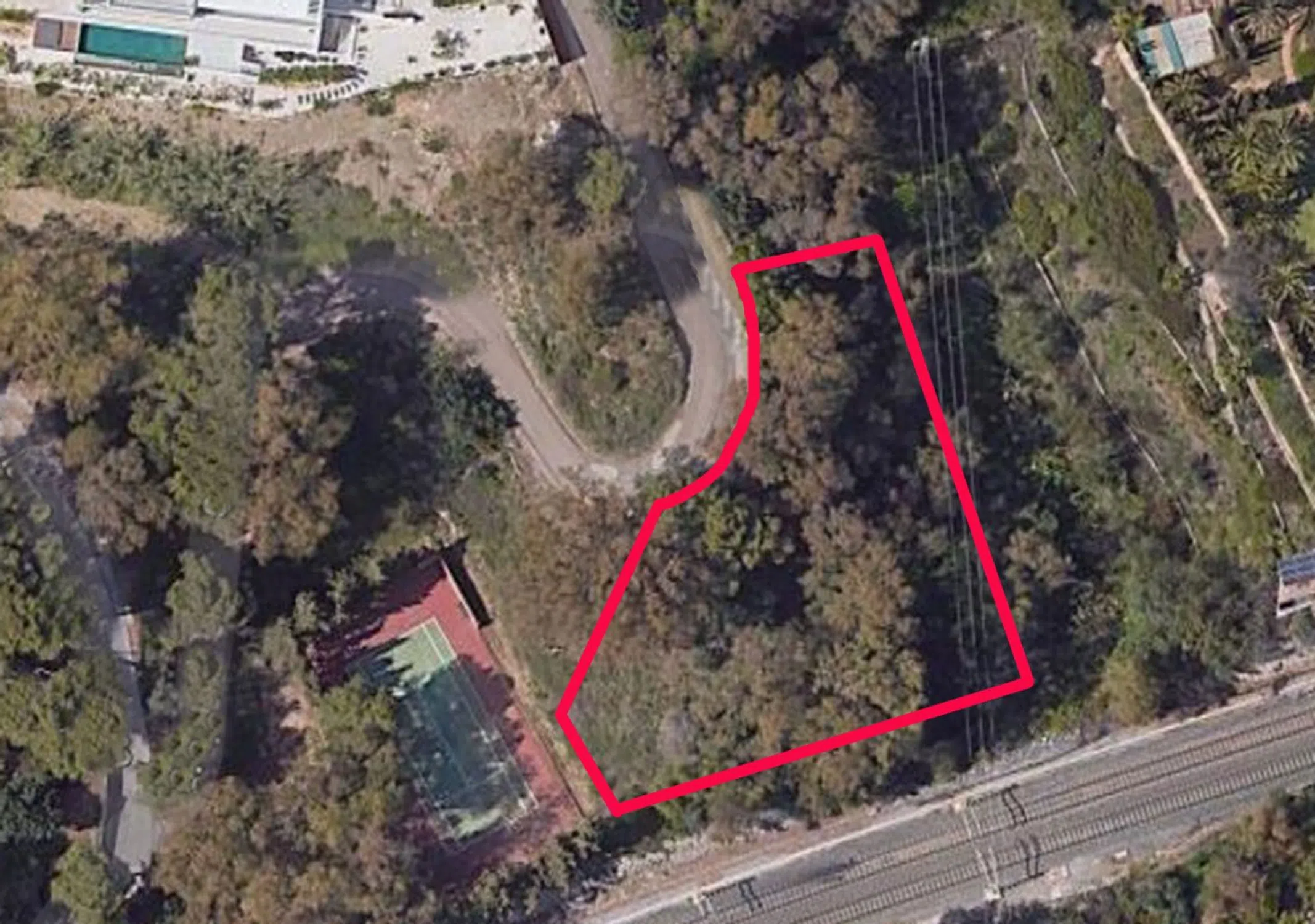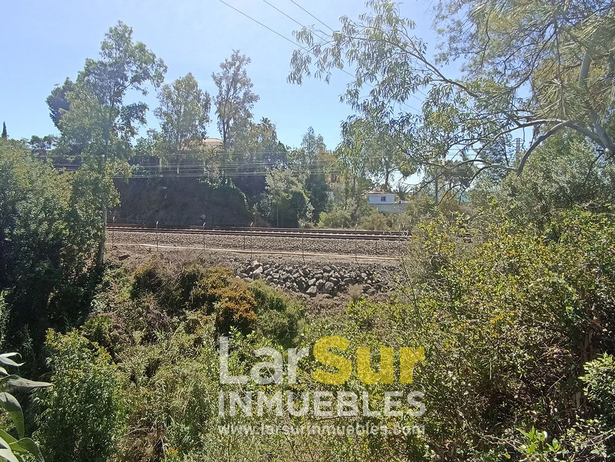 Terreno situado a sólo 400 metros de la playa y con fácil y rápido acceso desde la carretera. Urbanización única, poco habitual en la costa y muy tranquila, en un entorno natural con frondosa vegetación y arbolado. La parcela tiene mucha privacidad ya que está situada, hciendo esquina, entre una vaguada y la pista de tenis de la urbanización. Con gran desnivel y el tren pasa justo enfrente. La clasificación es de "Suelo Urbano Consolidado" y la edificabilidad máxima es del 25%, lo que permite construir una vivienda de hasta 320 metros cuadrados de superficie en dos plantas. La urbanización tiene que realizar una serie de mejoras y el Ayuntamiento no concede licencia de obra nueva hasta que se hagan.
