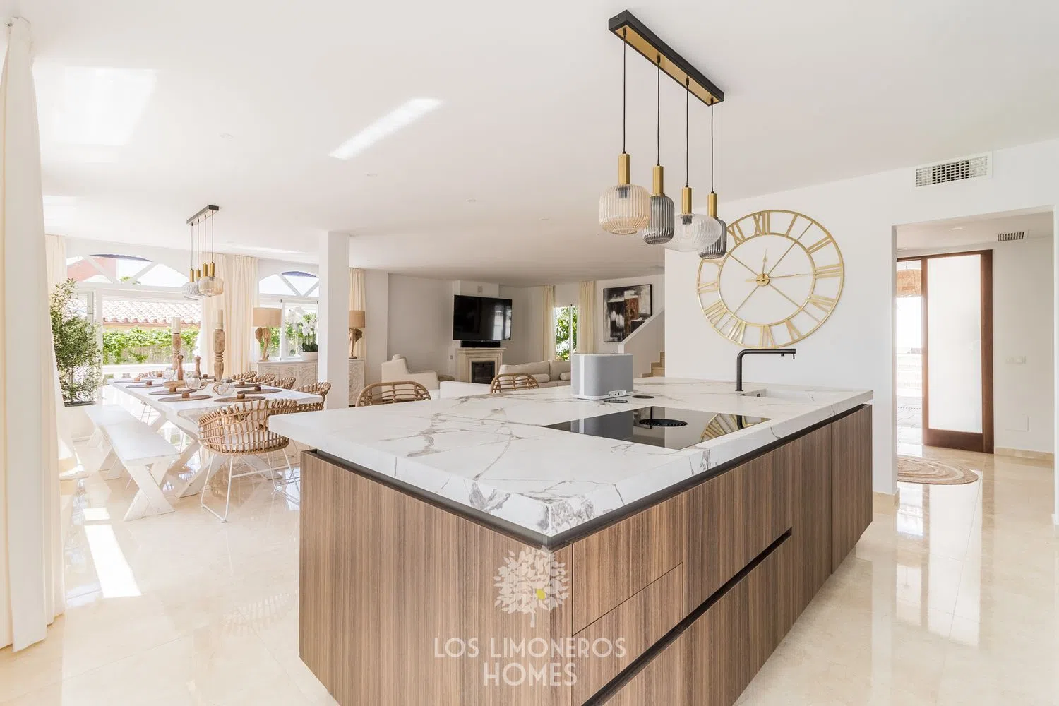 Ubicada en el sereno y codiciado enclave de El Padrón, Estepona, esta exquisita villa andaluza ofrece una mezcla perfecta de encanto tradicional y lujo moderno. Abarcando una generosa parcela de 1.300 metros cuadrados, la propiedad cuenta con una residencia de 228 metros cuadrados bellamente diseñada con siete amplios dormitorios y cinco baños elegantemente equipados, proporcionando un amplio espacio para la vida familiar o para entretener a los invitados. Al entrar en la villa, la planta baja le da la bienvenida con dos dormitorios en suite, ideales para invitados o miembros de la familia, junto a un elegante aseo de invitados. El corazón de la casa es la moderna cocina abierta, con una gran isla que conecta a la perfección con el amplio y luminoso salón-comedor, creando un espacio perfecto para las reuniones. El uso de la luz natural y los acabados de alta calidad realzan la sensación de sofisticación y confort. Subiendo a la primera planta, encontrará dos dormitorios bien proporcionados que comparten un moderno cuarto de baño. Este nivel también da acceso a un impresionante solárium, donde una acogedora sala de lectura ofrece un apacible refugio o un funcional espacio de oficina. El solárium ofrece unas impresionantes vistas panorámicas de 360º, que permiten disfrutar de la belleza del paisaje circundante, desde las montañas hasta el mar Mediterráneo. El nivel inferior de la villa (planta -1) está diseñado para la relajación y el entretenimiento, con una espaciosa sala de juegos con un encantador bar, perfecto para recibir a amigos y familiares. Esta planta también incluye tres dormitorios adicionales, dos elegantes cuartos de baño y un práctico lavadero. El espacio exterior es un verdadero oasis, con un jardín meticulosamente cuidado que envuelve la villa en una exuberante vegetación. La piscina privada invita a disfrutar de refrescantes chapuzones, mientras que la amplia zona de barbacoa es ideal para comer al aire libre y celebrar reuniones veraniegas. La propiedad también ofrece aparcamiento para 2-3 coches, garantizando comodidad y seguridad. Situada en una urbanización tranquila, esta villa se encuentra a sólo tres minutos en coche de la playa y del famoso Club de Playa Laguna Village, donde podrá disfrutar del mejor estilo de vida costero. Tanto Estepona como Marbella se encuentran a 15 minutos en coche y ofrecen una gran variedad de restaurantes, tiendas y experiencias culturales. Esta excepcional villa es un hallazgo raro, que ofrece una combinación sin igual de ubicación, lujo y estilo de vida en una de las zonas más deseables de la Costa del Sol.