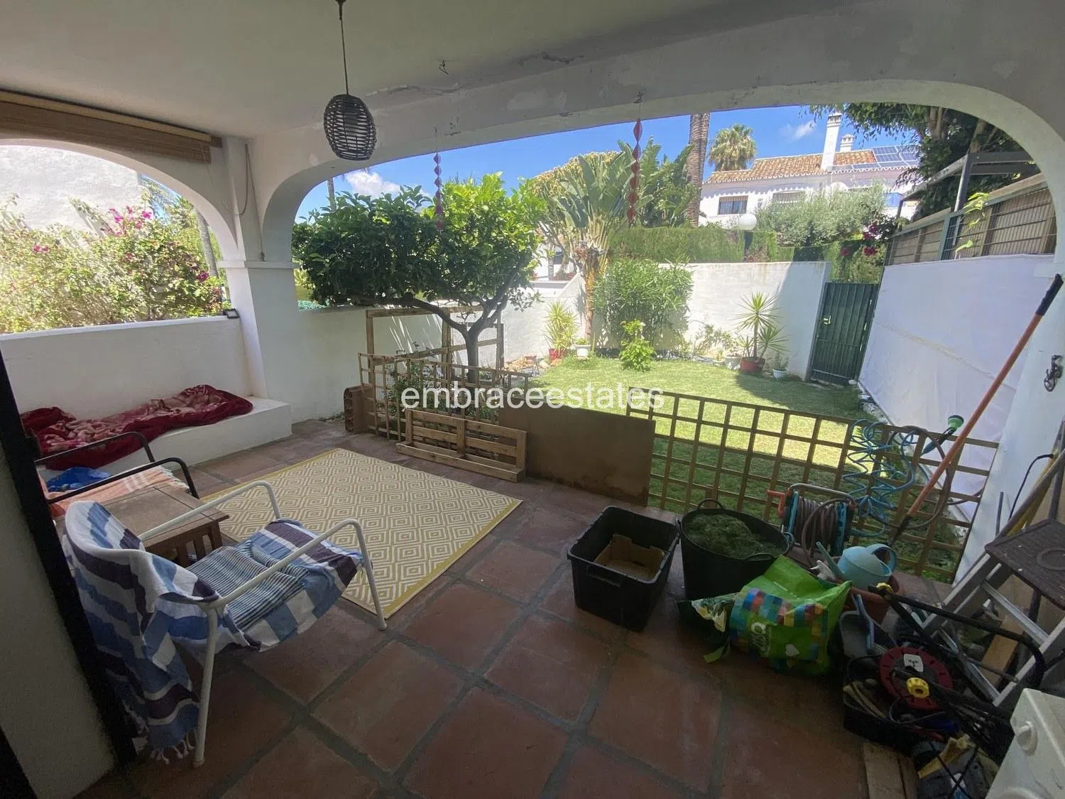 ¡CASA ADOSADA EN ESQUINA JUNTO A LA PLAYA DE 3 HABITACIONES Y 2 BAÑOS CON VISTAS AL MAR, LA MONTAÑA, LA PISCINA Y EL JARDÍN! Esta urbanización rara vez está disponible. Arroyo de la Plata - Estepona. Comunidad encantadora, tranquila y bien cuidada (principalmente residencial o segundas residencias, pero sin restricciones para alquileres turísticos). A pocos pasos de la playa, el paseo marítimo, la estación principal de autobuses (fácil desplazamiento desde y hacia el aeropuerto de Málaga), restaurantes, tiendas, supermercados, farmacia y mucho más). Tiene un gran sótano debajo de la casa ideal para almacenaje. La casa necesita reformas/actualizaciones, ya que se ha conservado su forma original y está habitada. Distribución: Se entra a las áreas principales: cocina, amplia sala de estar/comedor con chimenea, terraza privada y jardín privado con acceso directo al jardín comunitario y a la piscina. Arriba están los 3 dormitorios y 2 baños. El dormitorio principal tiene vistas al mar y baño en suite. Los otros 2 dormitorios tienen acceso a una terraza con vistas a la piscina comunitaria, los jardines y el jardín privado. ¡Ubicación/Oportunidad privilegiada que requiere renovación, lista para crear la casa de sus sueños! Para vídeos y visitas, contáctenos: ).