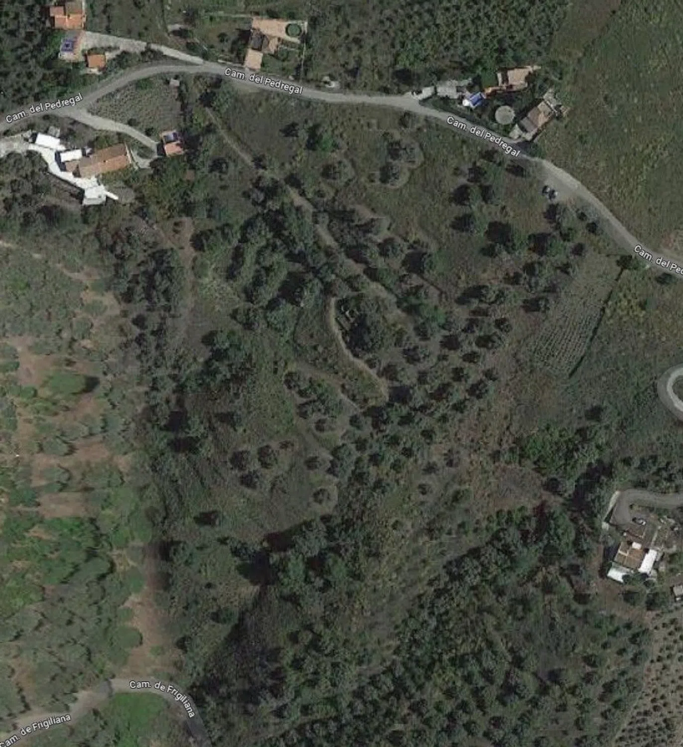 Magnifico terreno ubicado cerca de los cuatro caminos, en el camino del Pedregal. Terreno orientado hacia el sur en su totalidad, con acceso desde el norte mediante camino de tierra. Dispone de la mitad del cortijo (derruido) y tiene toma de luz. No tiene agua pero la disposición de los contadores es cercana.