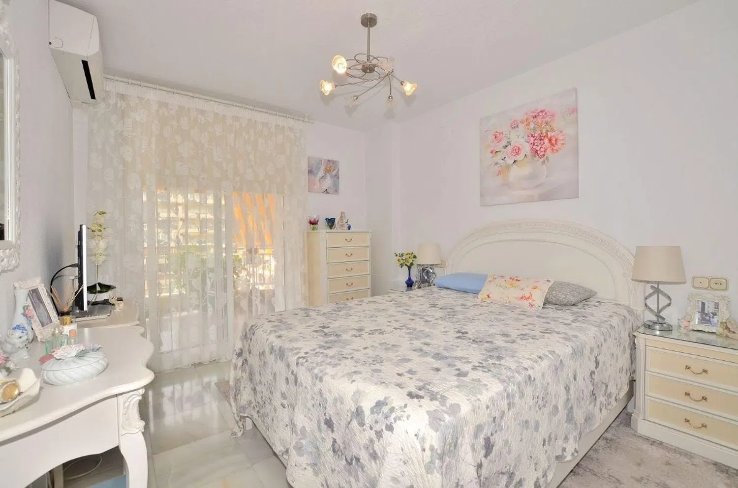 Precioso piso ubicado en Los Boliches (Fuengirola), a solo 300 metros de distancia a la playa. Ubicación ideal, junto a todo tipo de comercios y servicios caminando. Dispone de una GRAN TERRAZA, orientada al SUROESTE, con bonitas vistas a la piscina y jardín comunitario. Propiedad en impecable estado de conservación, lista para entrar a vivir. Cuenta con suelos de mármol, aire acondicionado en salón y dormitorio principal, armarios empotrados, etc.. . Además la cocina y uno de los cuartos de baño han sido reformados. Complejo privado con piscina y jardín comunitario. GASTOS DE COMUNIDAD DE TAN SOLO 48 €/MES. *Distancias: -Comercios: 50 mts. -Supermercado: 75 mts. -Estación de tren: 75 mts. -Playa: 300 mts. -Aeropuerto: 22,2 km. La distribución es la siguiente: Hall de entrada, cocina + lavadero, cuarto de baño, amplio salón-comedor con acceso a terraza. De vuelta al salón, pasillo, dormitorio 3, dormitorio 2 con acceso a terraza y finalmente dormitorio principal con baño en suite y acceso privado a terraza mencionado anteriormente. Información adicional: -Metros construidos (totales): 109 m2. -Vivienda: 84 m2. -Terraza: 25 m2. -Planta: 3ª. -Gastos de comunidad: 48€/mes. -Gastos de IBI: 470 €/año. -Gastos de basura: 80 €/año. -Orientación: Suroeste. -Año de construcción: 1993.