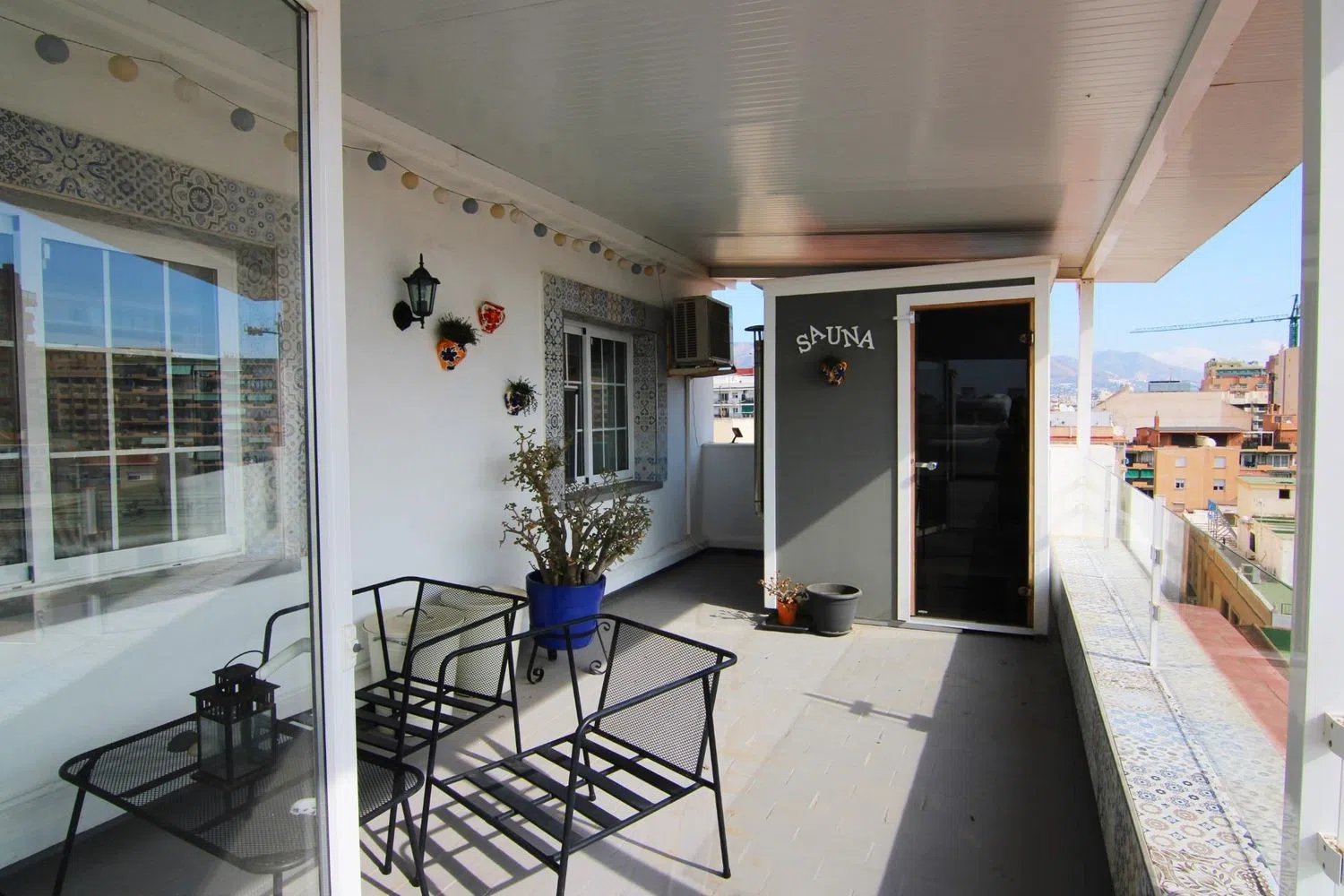 SU SUEÑO ES VIVIR EN LA MEJOR LOCALIZACION DE FUENGIROLA CON VISTAS PANORAMICAS AL MAR, AQUI TIENE SU HOGAR! Maravilloso piso-ático en la privilegiada zona centro de Fuengirola, con 2 dormitorios, ( de origen 3 dormitorios, ) que se sitúa en la última planta de un edificio ubicado a escasos metros del paseo marítimo de la zona, en el que hay solo dos pisos ocupan la planta, lo cual hará que tenga privacidad y tranquilidad, además no tendrá vecinos en las plantas superiores. Edificio con increíbles vistas al mar y a 100 metros de la playa! . La vivienda de unos 110m2 con vistas panorámicas a la ciudad y al mediterráneo, se distribuye en un hall, un pequeño rinconcito que el propietario destina a despacho dentro de un amplio salón-comedor con ventana para poder disfrutar del Sol gran parte del día y de las inmejorables vistas, con acceso a una amplia y luminosa cocina de grandes ventanales, y un lavadero-aseo. Pero el atractivo de la vivienda es la gran terraza que rodea la vivienda, con un acogedor mobiliario donde saborear largos atardeceres de la costa del sol durante 365 días al año, y acabar el día en un merecido descanso en una sauna ubicada en la misma terraza. El aeropuerto de Málaga se encuentra a escasos 15 minutos en coche. La zona de playas la localizamos a apenas 5 minutos a pie. La propiedad está totalmente preparada tanto para el turismo de verano, con alta rentabilidad, como para vivienda habitual, ya que podemos encontrar todos los servicios necesarios en los alrededores de la vivienda. Las posibilidades de esta vivienda, por su localización y sus conexiones, son altísimas, no pierda esta oportunidad!