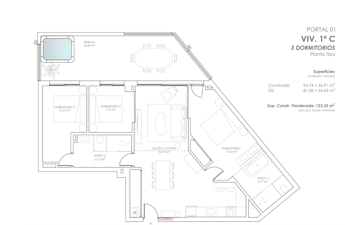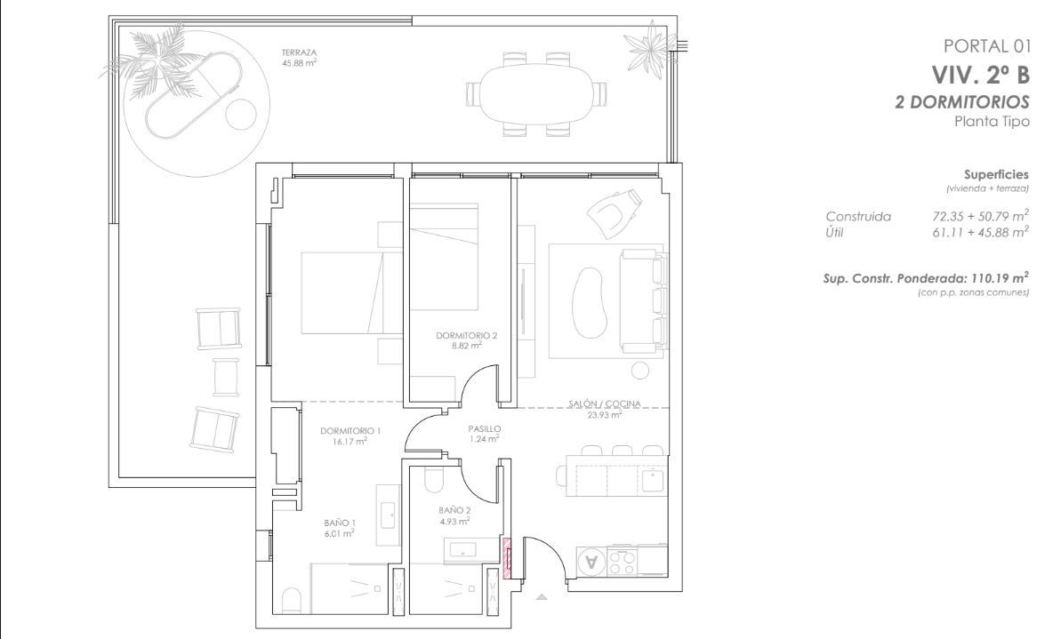 - Aparcamiento: Plaza y trastero por vivienda, con preinstalación para carga de vehículos eléctricos (R.D. 1053/2014).