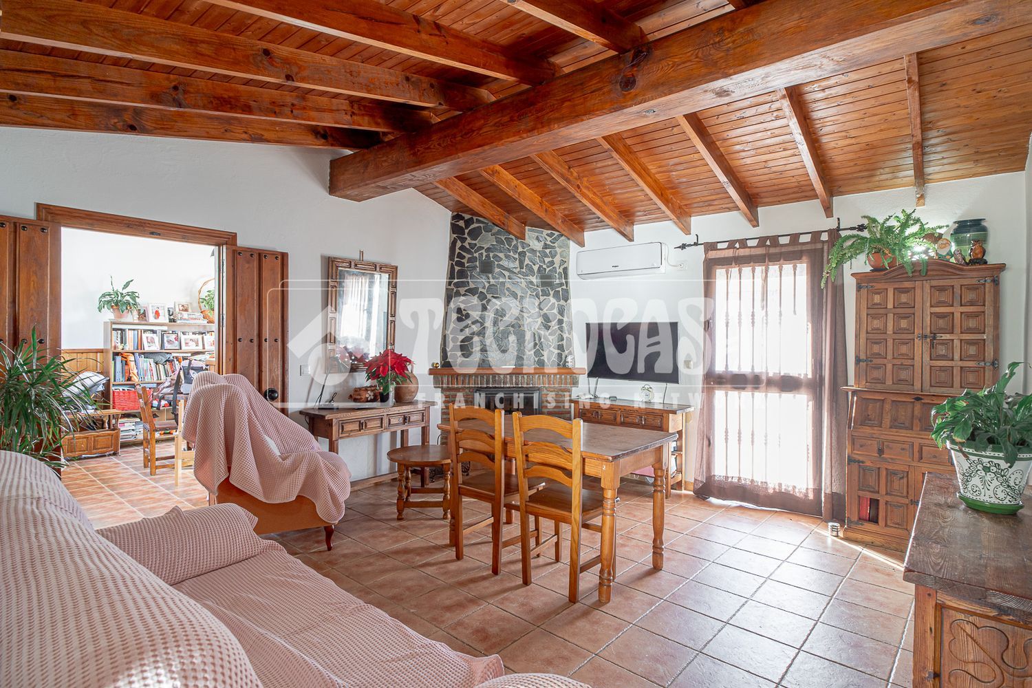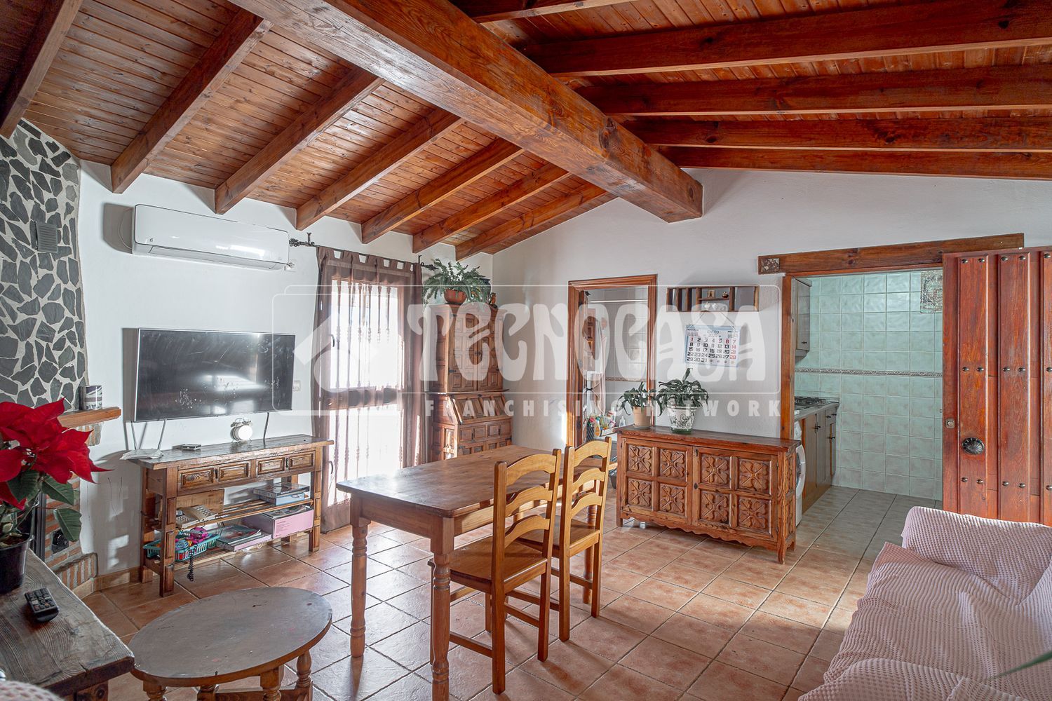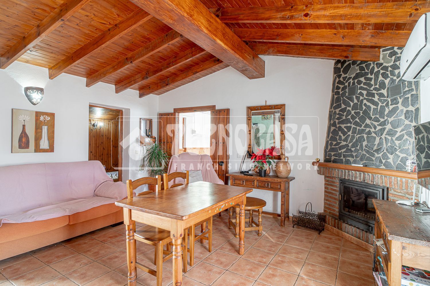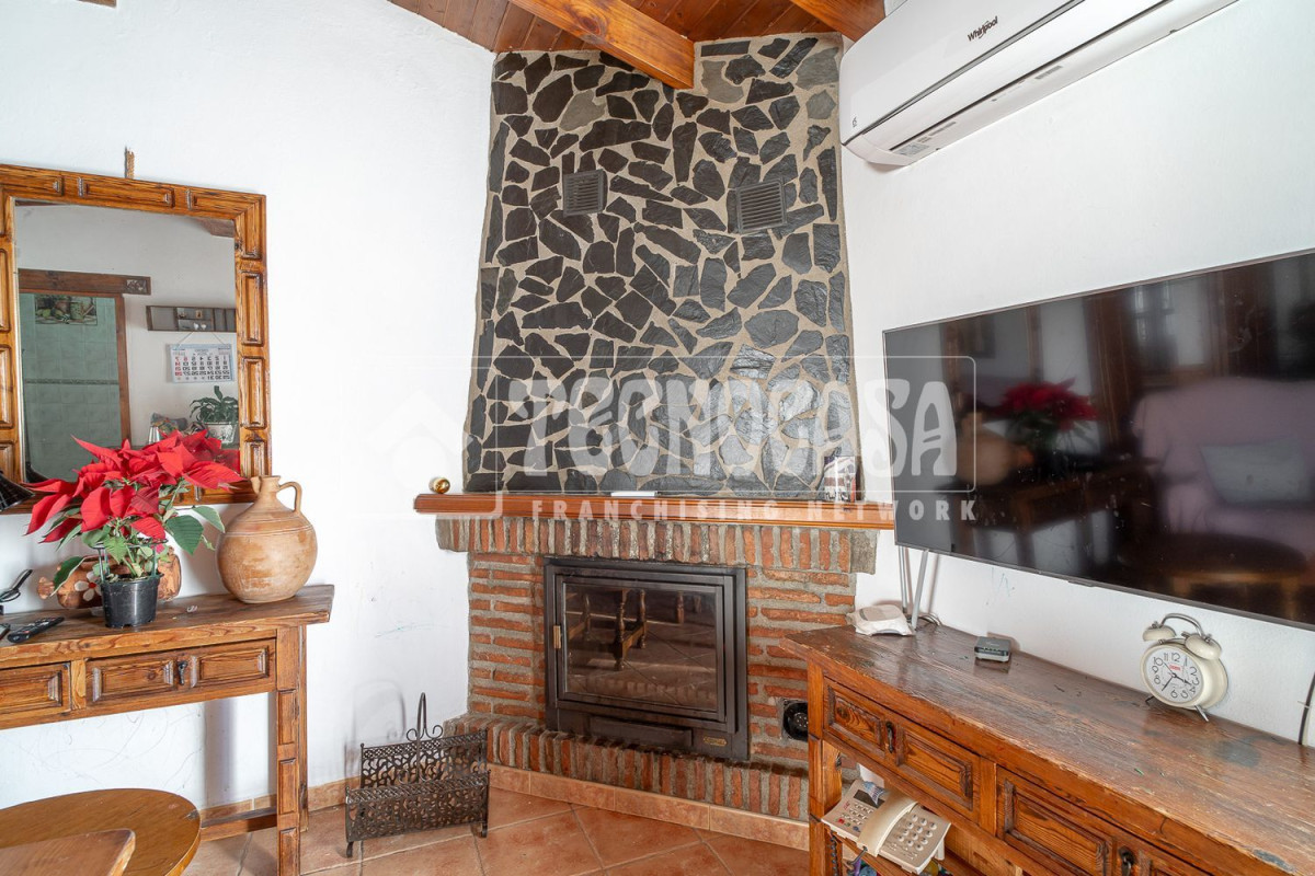 Iznate. Atico situado muy cerca de la oficina de Cajamar. Tiene salón con chimenea, cocina independiente, 2 dormitorios y baño con bañera. Totalmente reformado en estilo rústico, con vigas y puertas de madera y dormitorios con revestimiento de madera. Dispone de gran terraza al aire libre con preciosas vistas del pueblo y la sierra y bonita entrada a modo de porche que se puede usar como terraza en invierno.