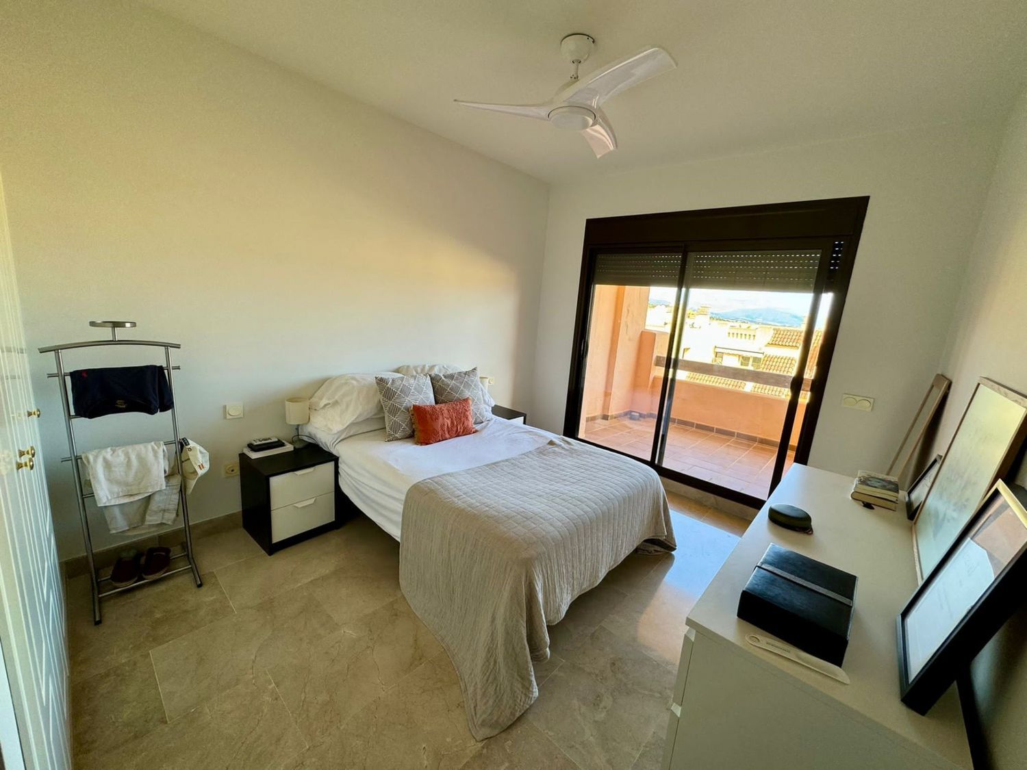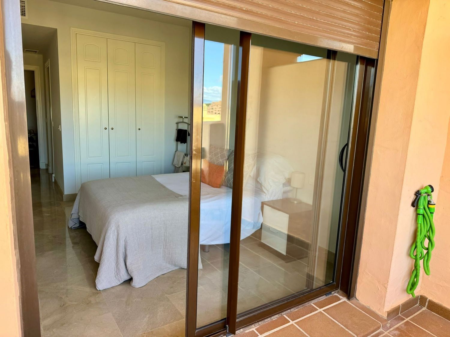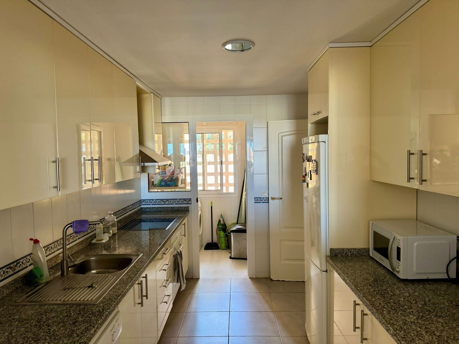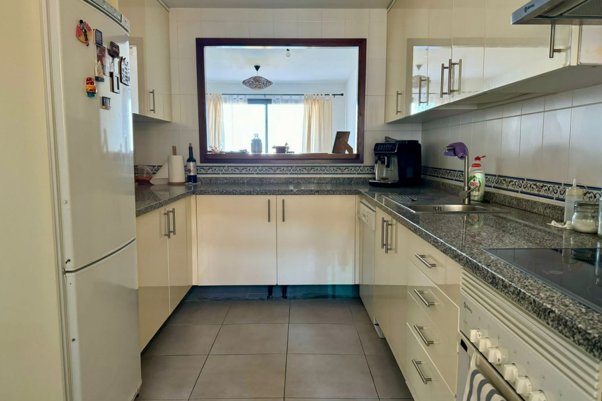 Este apartamento de 2 dormitorios y 2 cuartos de baño, uno con ducha y otro en suite con baño Turko, está situado en una urbanización a pocos minutos en coche del puerto de la Duquesa, con 5 piscinas rodeadas de bonitos jardines y 1 pista de padel, al lado de la parte alta del Golf de la Duquesa, tiene muy buena distribución y amplitud, desde el hall se puede acceder a todas las habitaciones de la casa, la cocina está abierta con un ventanal al salón y dispone de un lavadero con ventana, permitiendo entrar la luz y el aire a la casa, tanto el salón como el dormitorio principal tienen salida a una terraza de 15 metros, el dormitorio secundario da al oeste y es también muy luminoso por el gran tamaño de la ventana,algo importante a destacar también, es que tanto la plaza de garaje subterránea como el trastero, están al lado de la puerta del ascensor, es el apartamento ideal tanto para vivir todo el año como para vacaciones, por su seguridad, los bajos costes de comunidad e IBI y la bonita zona.