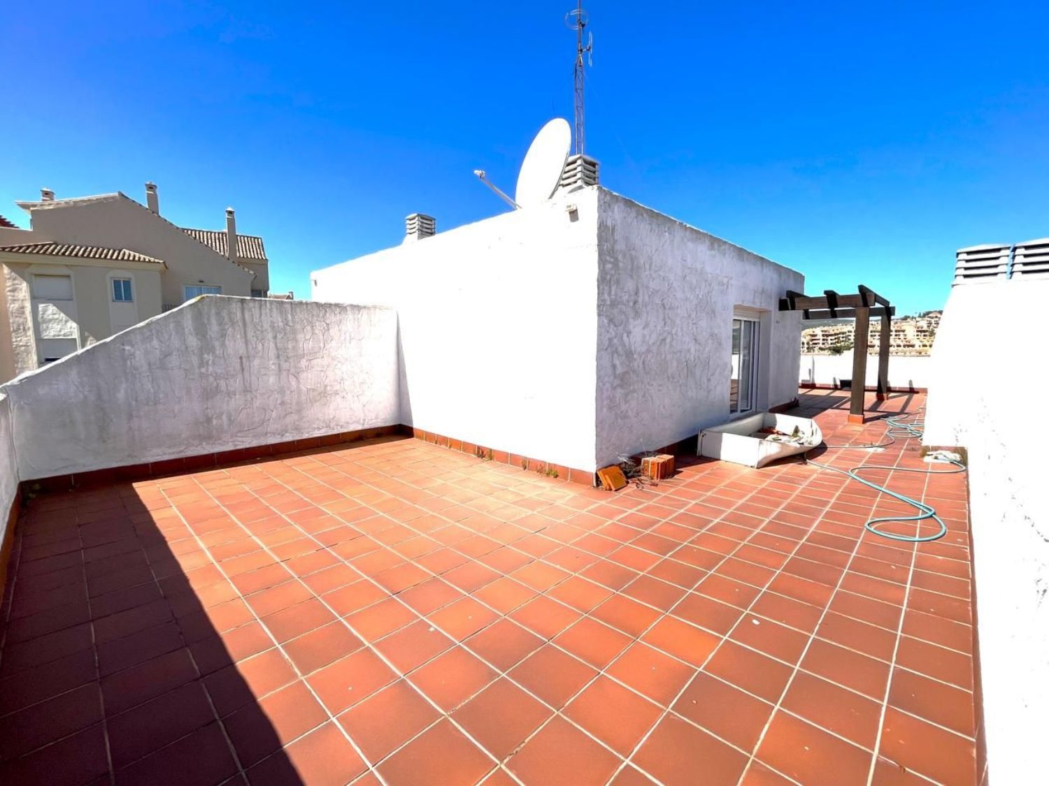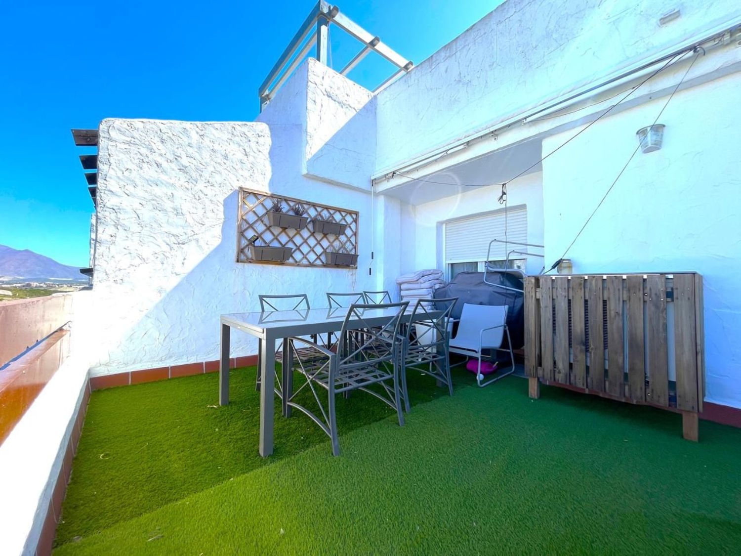 ESPECTACULAR ATICO DUPLEX CON AMPLIO SOLARIUM, Ubicado dentro del resort de golf en La Duquesa, a tan solo 5 min conduciendo del puerto deportivo, y sus maravillosas playas, donde encontrará una gran oferta de ocio: restaurantes, pubs, comercios, chiringuitos. Estepona a 10 km y Marbella a 25 km. Esta vivienda destaca por su amplia y cómoda distribución, ACTUALMENTE REFORMADA. Cuenta con dos terrazas en la primera planta y un impresionante Solárium con vistas panorámicas al golf y a las montañas. Construido con materiales de buenas calidades, armarios empotrados, aire acondicionado frio/calor y puerta entrada de seguridad. Se encuentra dentro de un residencial privado y cerrado con piscina y jardines, donde relajarse y disfrutar del buen clima de la zona durante los 365 días del año. Incluye plaza de parking y trastero. Es una gran oportunidad tanto de compra como de inversión. ¡ Recomendamos su visita!