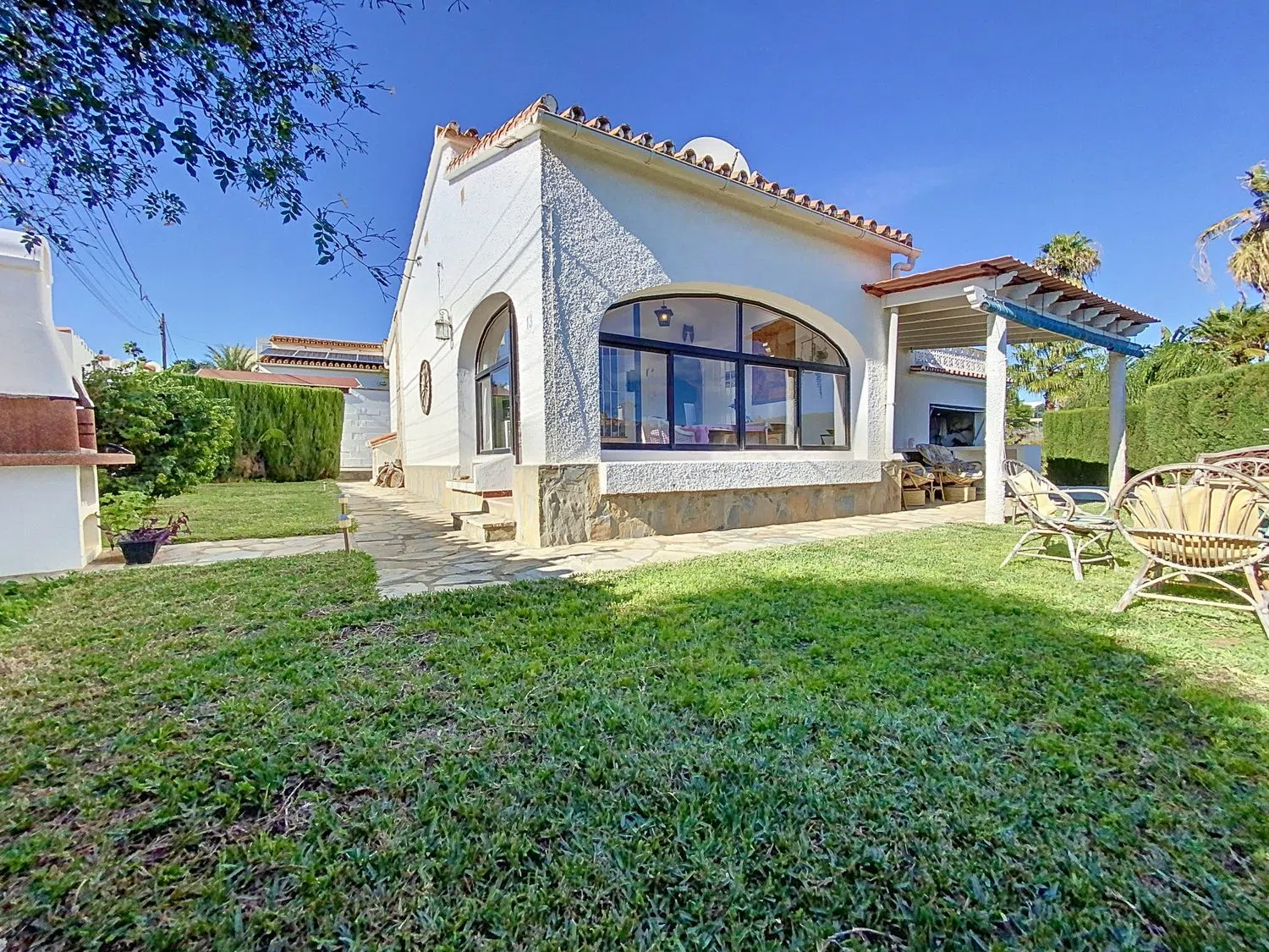 Ubicada en el encantador barrio de Jardín Tropical, en Manilva, Málaga, esta acogedora casa que ofrece una oportunidad única para vivir cerca del mar cuenta con dos dormitorios y un baño, con porche cubierto y terraza mas el garaje cubierto, distribuidos en 115 m² de construcción sobre una generosa parcela de 509 m². Destacada por su exclusividad y potencial de personalización. La casa goza de una ubicación privilegiada, lo que permite disfrutar de vistas parciales al mar y un entorno natural rodeado de otras villas y chalets. A tan solo cinco minutos de la playa, esta propiedad se encuentra cerca de todas las comodidades necesarias, incluyendo tiendas, escuelas, parques infantiles, y transporte público se encuentra a 2 minutos andado, 3 minutos en coche del Puerto de La Duquesa. Además, su proximidad a campos de golf como Finca Cortesín, La Duquesa, Doña Julia, Valderrama, La Reserva de Sotogrande y puertos deportivos la convierte en un lugar ideal para los amantes de las actividades al aire libre y el ocio náutico. Entre las características más destacadas de la vivienda se encuentran un amplio jardín privado ideal para disfrutar de agradables reuniones al aire libre. Aunque actualmente no cuenta con piscina, existe la posibilidad de construir una y, además, agregar una segunda planta para obtener vistas completas al mar. La casa está equipada con una terraza privada, una zona de barbacoa, y un porche cubierto, proporcionando múltiples espacios para el relax y el entretenimiento. El interior de la vivienda incluye un salón con chimenea, un comedor, y una cocina. También cuenta con armarios empotrados y un trastero, ofreciendo soluciones de almacenamiento prácticas. La casa está preparada para internet Wi-Fi. A pesar de que necesita reformas, ofrece la opción de adquirirla con muebles opcionales y se adaptar para personas con movilidad reducida, lo que la convierte en una opción versátil y atractiva para una amplia gama de compradores.