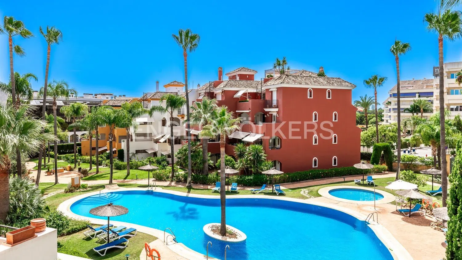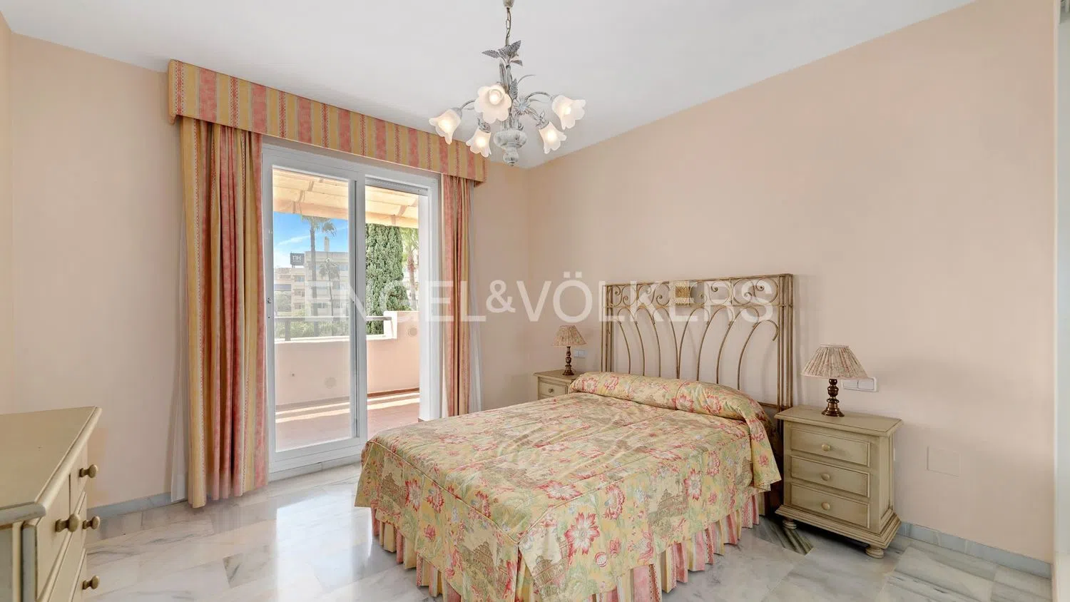 Este excepcional apartamento, situado en la codiciada urbanización El Infantado en la Milla de Oro de Marbella, se encuentra a poca distancia del paseo marítimo y del centro de Marbella. Cerca encontrará una gran variedad de tiendas, supermercados y restaurantes para su comodidad y Puerto Banús está a sólo 5 km. La urbanización ofrece jardines comunitarios bien cuidados, una amplia piscina, piscina para niños y pistas de pádel. Una vez dentro de este luminoso piso de esquina de segunda planta, le dará la bienvenida un bonito salón comedor. La terraza, con unos generosos 25 m², invita a comer al aire libre mientras disfruta de las vistas a la piscina y las zonas ajardinadas. El dormitorio principal tiene baño en suite, armario empotrado y acceso a la terraza. El dormitorio de invitados también tiene un armario empotrado y ofrece vistas a los jardines y las montañas. Hay otro cuarto de baño y una cocina independiente totalmente equipada con lavadero. Este apartamento ha sido meticulosamente mantenido para proporcionar comodidad y estilo. Dispone de aire acondicionado central. Vivir en este piso de esquina ofrece ventajas excepcionales, incluyendo privacidad, vistas despejadas del impresionante jardín y la piscina, y un entorno tranquilo lejos del ruido de la carretera. Completan este atractivo paquete una plaza de aparcamiento subterráneo y un trastero, junto con la tranquilidad que proporciona la seguridad 24/7 dentro de la comunidad cerrada. No se pierda esta oportunidad única de poseer un apartamento en la zona más codiciada de Marbella. Concierte una visita hoy mismo y dé el primer paso para vivir su sueño.