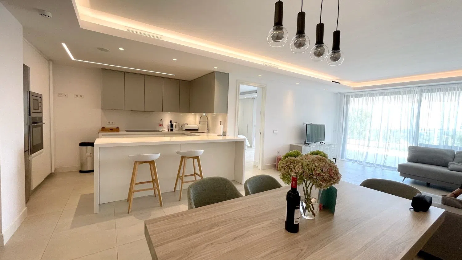 Experimente el epítome de la vida de lujo con este exquisito apartamento en la planta baja, que ofrece impresionantes vistas al mar y a la montaña en la exclusiva comunidad de Azahar de Marbella. Ingrese y sea recibido por una cocina espaciosa y totalmente equipada, perfectamente integrada con una elegante sala de estar y comedor. Las ventanas panorámicas inundan el espacio de luz natural y se abren a una terraza cubierta donde podrá disfrutar de las impresionantes vistas del mar Mediterráneo. La terraza se extiende hasta un exuberante césped privado, lo que ofrece vistas adicionales de la icónica montaña de la Concha. Con áreas sombreadas e iluminadas por el sol, la terraza es perfecta para cenar al aire libre, recibir invitados o incluso agregar una piscina privada o un jacuzzi para realzar su oasis al aire libre. El dormitorio principal cuenta con baño privado y acceso directo a la terraza, ofreciendo un espacio sereno para despertarse con la belleza del mar. Los dos dormitorios adicionales están bien equipados y comparten un baño moderno, lo que garantiza comodidad y conveniencia para la familia o los invitados. En el precio están incluidos 2 plazas de garaje y 2 trasteros. Azahar de Marbella cuenta con una gama de comodidades excepcionales que incluyen una piscina comunitaria, jardines minimalistas y una zona de spa completa con sauna, baño turco, jacuzzi y gimnasio. Con una ubicación ideal a poca distancia de todos los servicios de Aloha y cerca de los famosos campos de golf y clubes de tenis de Nueva Andalucía, este apartamento está a solo 7 minutos en coche del vibrante Puerto Banús. Ya sea que busque sol o sombra, este apartamento le permitirá disfrutar del ambiente perfecto desde el amanecer hasta el atardecer. Haga de Azahar de Marbella su santuario y disfrute del mejor estilo de vida costero.