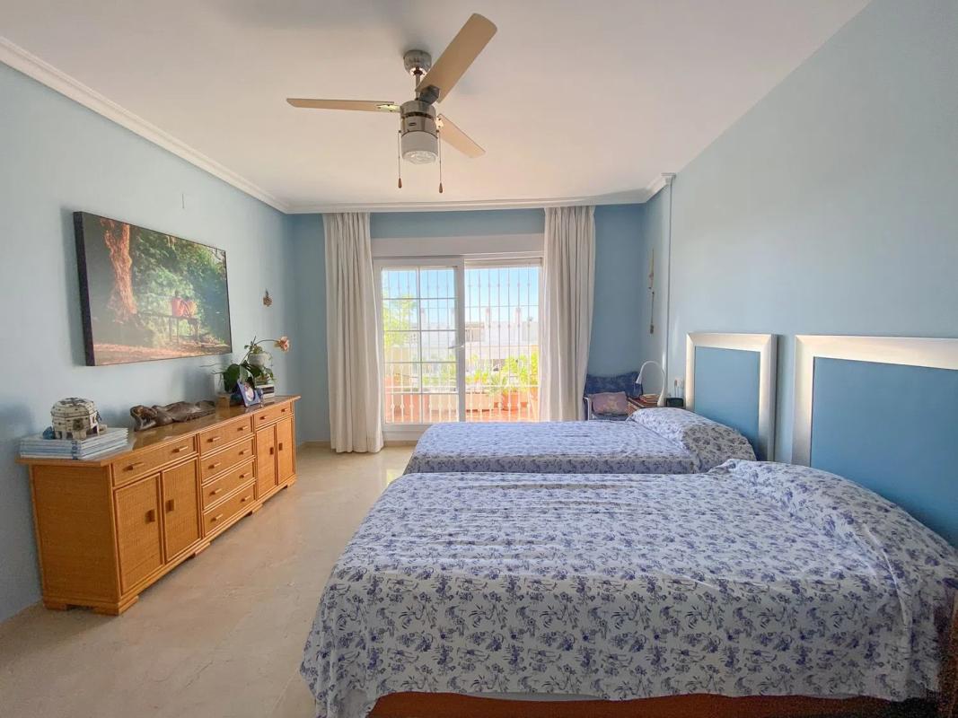 Este ático dúplex está idealmente situado en la Milla de Oro de Marbella, a pocos minutos a pie del Hotel Puente Romano y la playa y un corto trayecto en coche en el centro de Marbella o Puerto Banús. Con vistas parciales al mar, esta espaciosa propiedad orientada al sur tiene tres dormitorios y dos baños, la suite principal ocupa todo el primer piso con vestidor, enorme cuarto de baño con ducha y dos grandes terrazas orientadas al sur y al norte. La planta baja tiene suelos de parquet, una cocina independiente totalmente equipada y terrazas soleadas delante y detrás. Un montón de almacenamiento, aire acondicionado en la sala de estar y un ventilador de techo en el dormitorio principal. La comunidad cerrada y segura tiene una piscina comunitaria y la propiedad viene con una plaza de aparcamiento subterráneo asignado. Un apartamento con gran potencial.