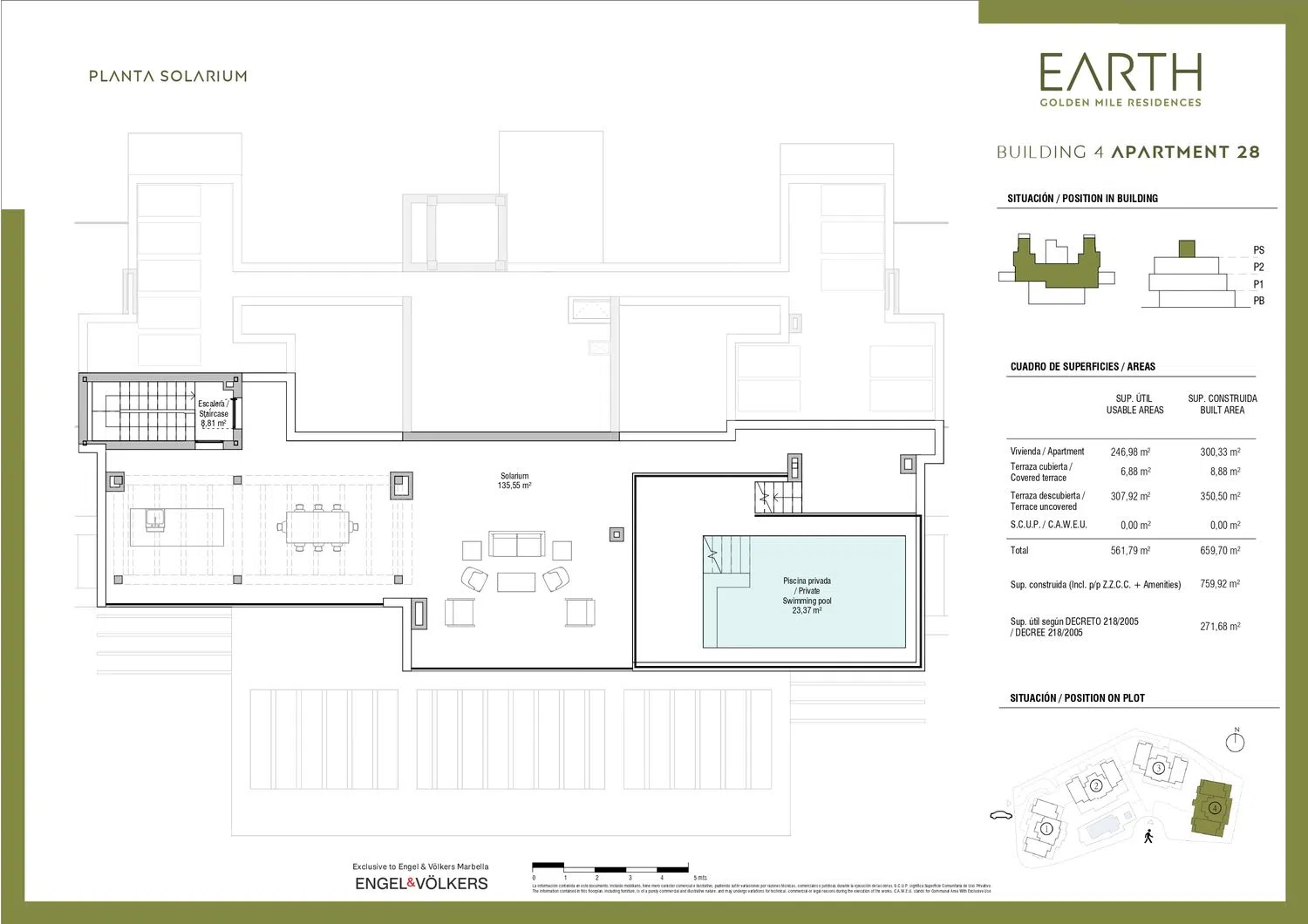 Descubra el verdadero lujo en este exquisito ático situado en la prestigiosa comunidad cerrada EARTH en la Milla de Oro de Marbella. Abrace el esplendor del diseño contemporáneo y la vida sostenible mientras se deleita con la impresionante belleza del paisaje de Marbella. Este extraordinario ático ofrece un estilo de vida que combina la opulencia con la conciencia medioambiental. Este ático de una sola planta abarca una planta entera, lo que garantiza la privacidad y una sensación de grandeza. La disposición cuidadosamente diseñada ofrece una integración perfecta de espacios interiores y exteriores, con una abundancia de luz natural que inunda las zonas de estar. Cada detalle ha sido meticulosamente considerado, desde la sala de estar y comedor de planta abierta que fomenta una sensación de amplitud, la cocina de alta gama de Modulnova a las tranquilas habitaciones con baño privado. Salga a las terrazas, parcialmente cubiertas por una pérgola, donde podrá saborear las fascinantes vistas. El esplendor continúa al ascender al solárium, accesible a través de una escalera interior. Aquí encontrará un comedor cubierto, un relajante espacio chill-out y su propia piscina privada: un oasis de lujo y tranquilidad. La comunidad cerrada EARTH es un testimonio del lujo sostenible. Además de las magníficas características del ático, podrá disfrutar de acceso a un spa de última generación, un gimnasio totalmente equipado, una sala de yoga y una piscina exterior de agua salada. Los residentes más jóvenes pueden abrazar el vibrante estilo de vida con un club infantil y piscina. La seguridad es de suma importancia, y el complejo ofrece control de entrada las 24 horas a través de una caseta de seguridad. La ubicación del ático en la Milla de Oro de Marbella garantiza un fácil acceso al renombrado Marbella Club Hotel y Puente Romano Resort y a la playa, donde podrá disfrutar de comodidades y servicios de primera clase. Las obras han empezado ya y finalizarán en la primavera de 2025.