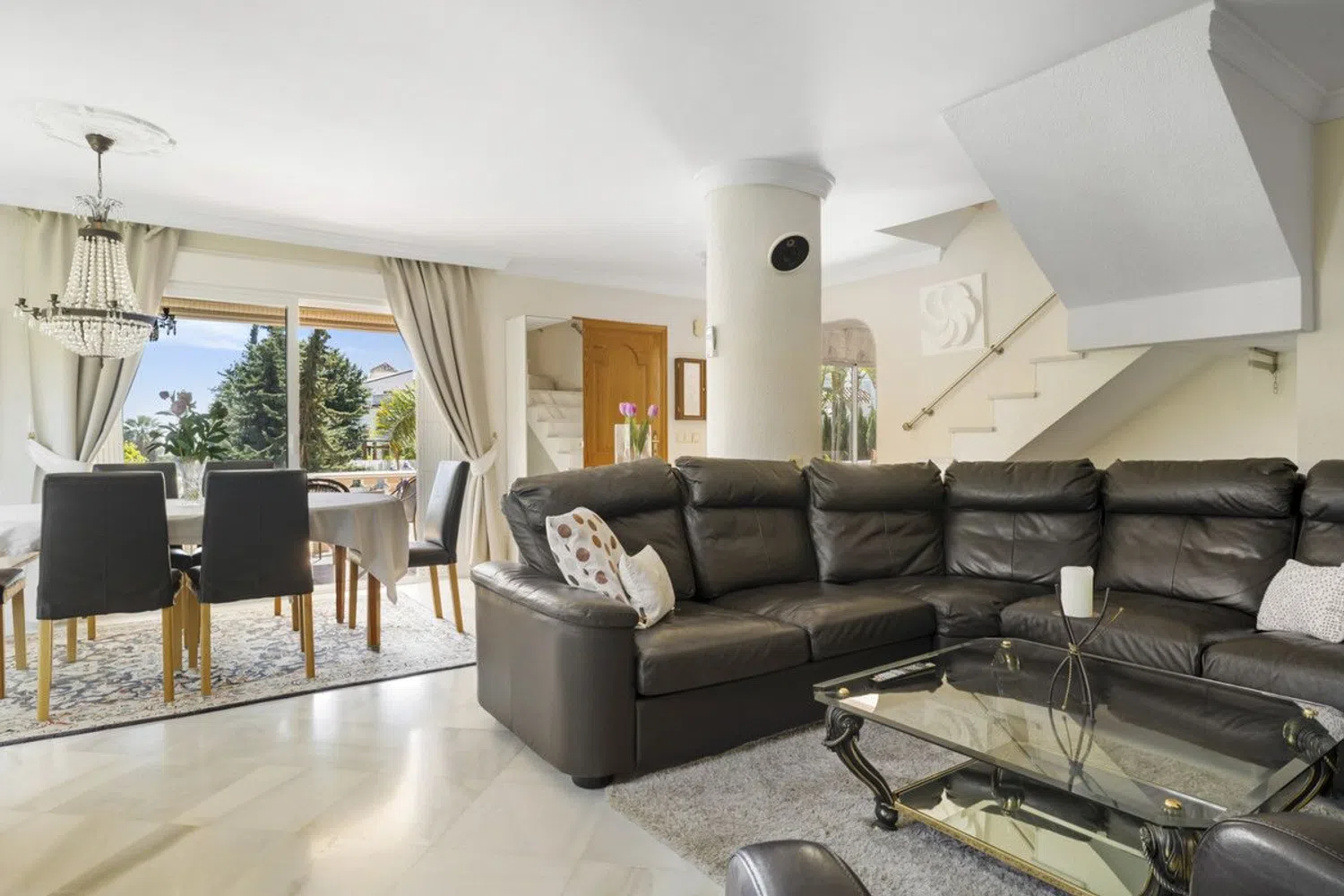 Descubra esta encantadora villa tradicional en Nueva Andalucía, que ofrece una ubicación privilegiada con exposición sur, privacidad y tranquilidad. A poca distancia encontrará una gran variedad de bares y restaurantes, mientras que Puerto Banus y la playa están a solo 5 minutos en coche. La planta principal le da la bienvenida con una acogedora sala de estar con chimenea, una zona de comedor y una cocina totalmente equipada de planta abierta. Tres habitaciones, dos baños, y un aseo de invitados ofrecen un amplio alojamiento. Salga fuera para disfrutar del acceso directo a las terrazas cubiertas y abiertas, así como una encantadora zona de estar. Ascendiendo a la primera planta, descubrirás la suite principal con un vestidor y un lujoso jacuzzi. En la planta baja, situada a nivel de jardín, un dormitorio de invitados independiente con baño, sauna y zona de lavandería. El aparcamiento está hecho fácil con un garaje para un coche y espacio de estacionamiento adicional para dos coches más. En el exterior, la villa cuenta con un jardín maduro con una piscina espumosa, un bar abierto, una zona chill-out con un barbacoa, perfecto para entretener y relajarse por igual.