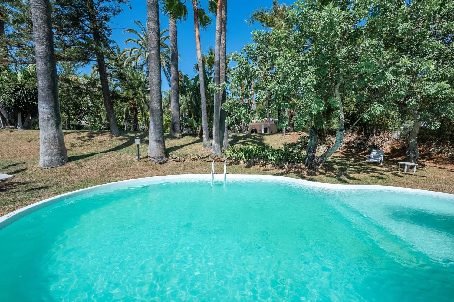 4422 M2 DE PARCELA. Posibilidad de hacer varias viviendas. villa de estilo mediterráneo de 1 planta, 3 dormitorios, 4 baños y 339 m2 es un sueño hecho realidad y está situada en una parcela de 4.422 m2. Situada en Nagüeles cerca de la Clínica Buchinger y justo por encima de la Milla de Oro de Marbella. Una propiedad impresionante que cuenta con una casa principal, un apartamento de invitados encima del garaje, un jardín lleno de caminos, una cascada de roca y un pequeño lago con hermosos nenúfares. Se trata de un oasis escondido en un entorno aparentemente lejano, pero a sólo unos minutos de la playa y del centro de Marbella. Una propiedad que no aparece a menudo y es ideal para aquellos que buscan refugio de un ajetreado estilo de vida de la ciudad. Orientada al sur, la residencia es una pizarra en blanco para el próximo comprador. Acceda a la propiedad a través de las puertas eléctricas para encontrar una gran zona de aparcamiento. Entrar en la casa y disfrutar de una amplia sala de estar con mucha luz natural con vistas a la terraza cubierta y exterior. Hay un comedor separado con cocina, una gran suite principal con una encantadora chimenea y 2 suites de invitados. El apartamento de invitados está situado encima del garaje e incluye un pequeño dormitorio. Lo más destacado de la villa es el extraordinario jardín maduro con su pequeño lago, cascada, piscina e infinitas zonas chillout. Esta es una rara oportunidad de poseer un pedazo de cielo en la Costa del Sol. Situado en una inmejorable ubicación pintoresca en Nagüeles con fácil acceso a la carretera de la costa y la autopista. El centro de Marbella, el Valle del Golf en Nueva Andalucía y Puerto Banús están a menos de 10 minutos en coche. Cerca de varios colegios privados internacionales, incluyendo Swan, Aloha y Laude. Cerca de todos los servicios necesarios como supermercados, bancos, centros médicos y mucho más. El aeropuerto de Málaga está a una hora en coche por la AP-7 y el aeropuerto de Gibraltar está a una hora en coche.