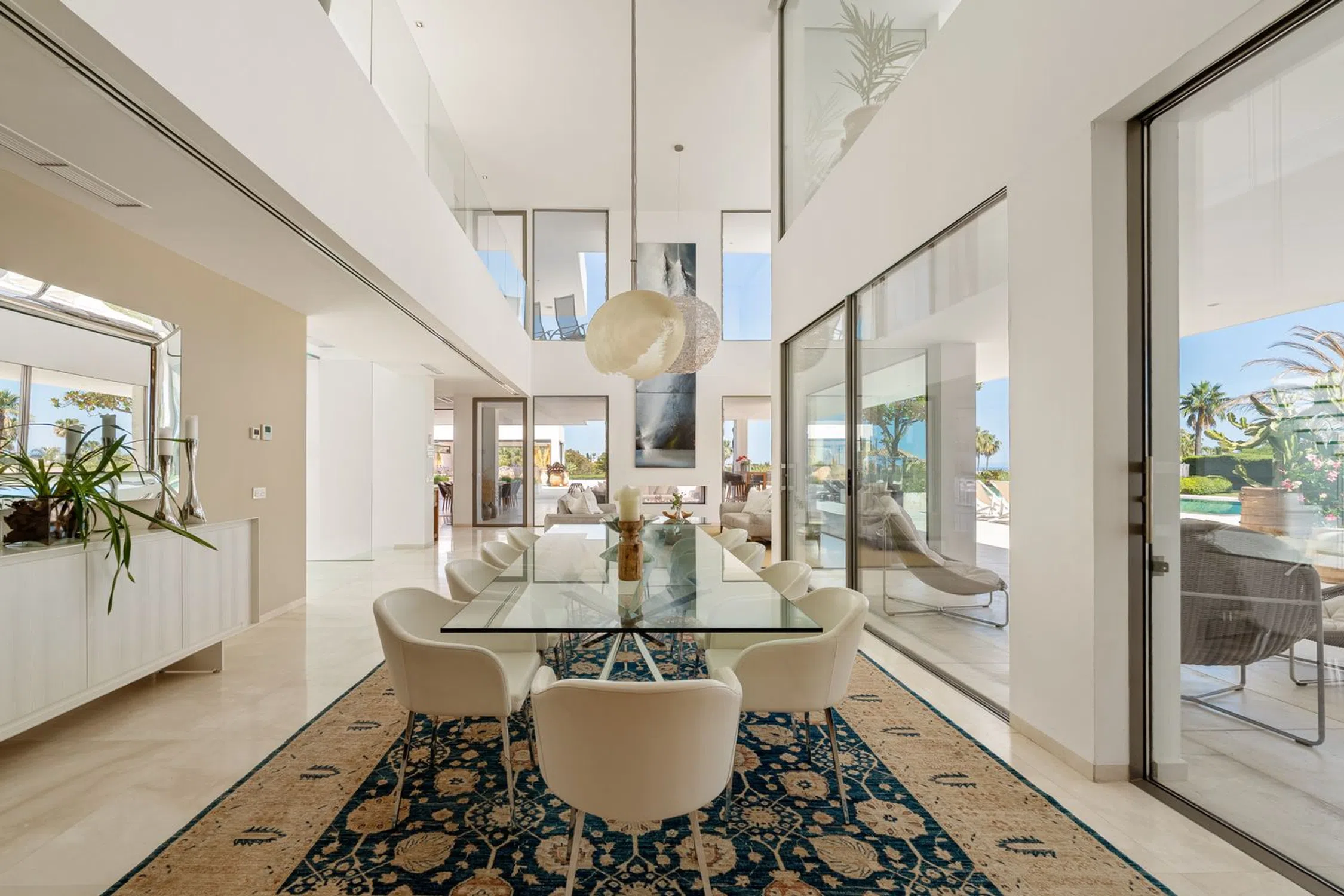 Presentamos Cerquilla 59, una impresionante villa contemporánea situada en el prestigioso barrio de La Cerquilla, en pleno corazón del Valle del Golf de Nueva Andalucía. Esta exclusiva residencia de 7 dormitorios se asienta sobre una generosa parcela de 2.548 m², ofreciendo una privacidad inigualable y vistas panorámicas de la icónica montaña La Concha y la costa mediterránea. Su ubicación privilegiada la sitúa cerca de los mejores campos de golf, colegios internacionales, restaurantes de alta gama y el animado puerto deportivo de Puerto Banús, lo que la convierte en una opción excepcional tanto para invertir como para disfrutar del estilo de vida marbellí. Al entrar, se descubren unos interiores amplios, cuidadosamente diseñados con texturas naturales y acabados elegantes. La villa ofrece techos altos, luminarias sofisticadas y una fluida conexión entre los espacios interiores y exteriores. Las zonas principales de estar son amplias y acogedoras, decoradas con mobiliario a medida, materiales orgánicos y elementos decorativos seleccionados como arte mural tejido y cerámicas artesanales. En la planta superior, un corredor tipo galería con vistas a la planta baja conecta con dormitorios que cuentan con terrazas privadas y vistas espectaculares. El corazón de la casa es una moderna cocina equipada con electrodomésticos de primera calidad, elegantes armarios y un amplio comedor acristalado enmarcado por ventanas de suelo a techo. La conexión perfecta con los espacios exteriores incluye una impresionante piscina con jacuzzi, tumbonas de estilo balinés y una terraza cubierta con chimenea y barbacoa, perfecta para el entretenimiento. Lo mejor es la pista de tenis privada e impecable situada al pie del jardín, ideal para que los residentes la utilicen durante todo el año. Cerquilla 59 es el epítome del lujo contemporáneo en un entorno mediterráneo, y ofrece una combinación inigualable de comodidad, sofisticación y ubicación.