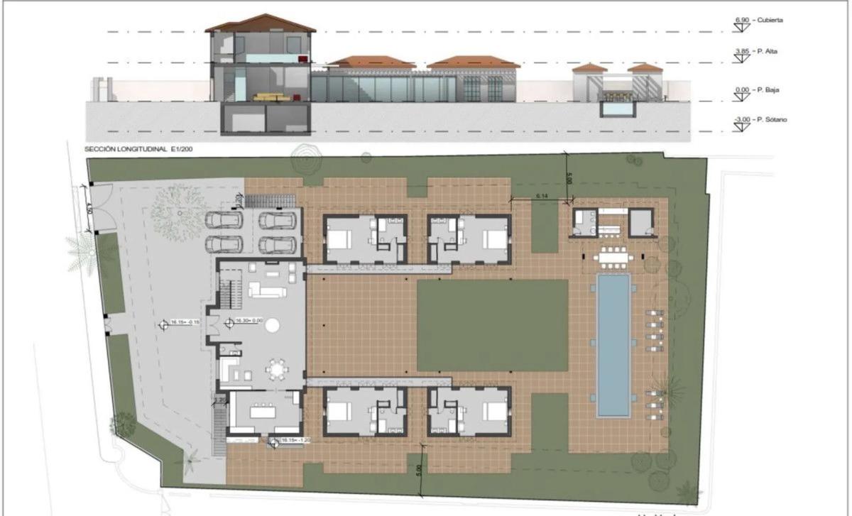 Con el proyecto y lisencia de obra aprobada! El proyecto consiste de la villa principal de 4 niveles: Planta principal ofrece gran entrada con altura doble, salón, cocina abierta, 4 dormitor...