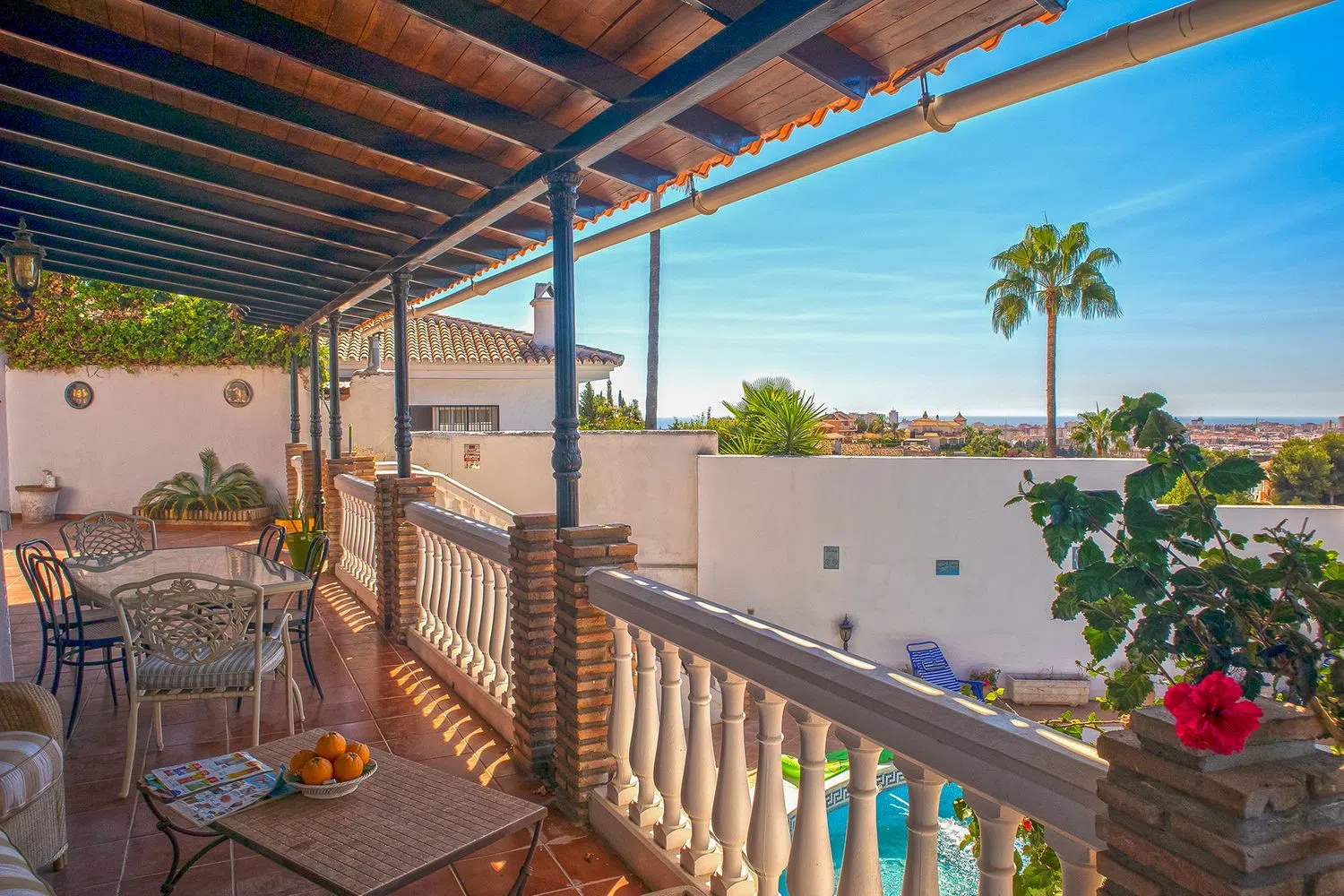 Gran oportunidad de adquirir una amplia villa, en zona tranquila y con bonitas vistas. La propiedad nos recibe desde su entrada, con parking para varios vehículos. Al acceder tenemos un hall con oficina, así como un amplio dormitorio ensuite. Tomando las escaleras bajamos al siguiente nivel, con dos dormitorios que comparten un baño. Posteriormente llegamos a su señorial salón, amplio, con chimenea y sala de estar. Comedor independiente, conectando con la cocina por un elegante pasamanos. Su cocina es extensa, con una gran isla en medio, ideal para cocinar o desayunar. Salida a una de las terrazas. Finalmente amplio dormitorio ensuite con vestidor. Gran gimnasio. En el exterior tenemos varias terrazas, zona de barbacoa, dos trasteros y piscina. Además terreno inutilizado dentro de la parcela que podría emplearse como jardín u otros usos. Los propietarios son dueños de la parcela adyacente (no incluida en este precio), una gran extensión de 1750 m2 con edificabilidad del 0'25% y un enorme potencial para construir una o varias villas más. Sin duda la villa dada su ubicación merece mucho la pena. Visítela para apreciar en persona sus calidades y categoría.