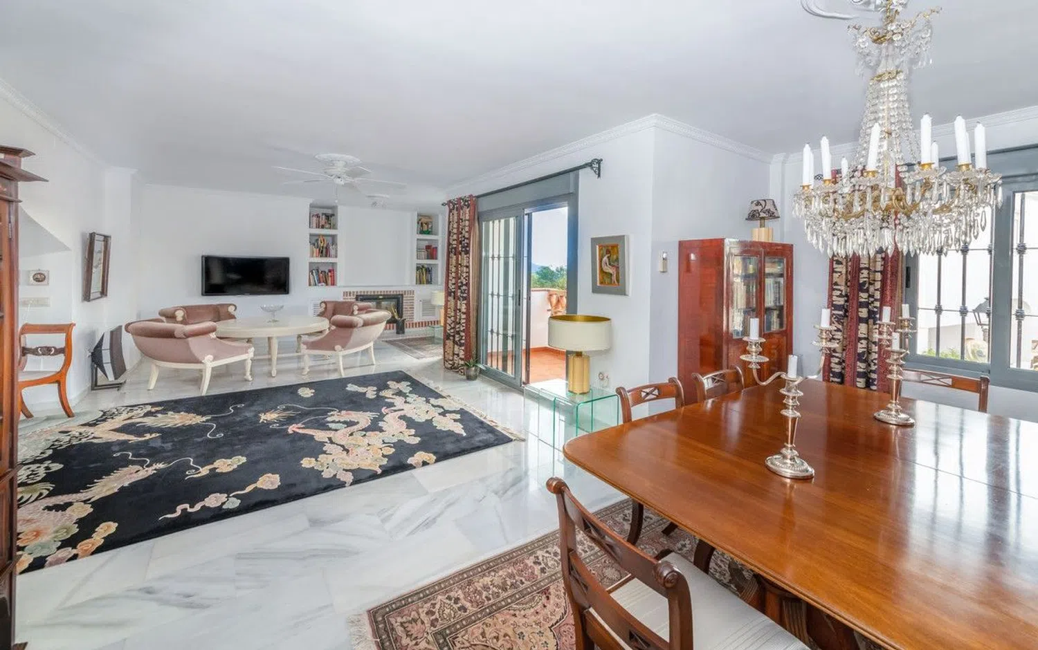 Sumergida en el encantador paisaje de Mijas Pueblo, donde la costa bañada por el sol se encuentra con las majestuosas montañas, se encuentra esta impresionante casa adosada. Ofreciendo una combinación excepcional de lujo y confort, esta casa cuenta con cuatro dormitorios, tres baños y una gran sala de estar con una acogedora chimenea. El área de la cocina es una combinación perfecta de espacio y funcionalidad, y cuando llega el momento de cenar al aire libre con familiares y amigos, no podría haber un lugar mejor que el pintoresco patio interior con limoneros y mandarinos. Suba a la terraza de la azotea y será recibido con una vista impresionante del mar y las montañas. Disfrute del calor del sol mientras se ducha en la ducha al aire libre o descansa con un buen libro. Esta hermosa propiedad también cuenta con un garaje para dos autos, una bodega y amplio espacio de almacenamiento. Ubicado en la encantadora ciudad de Mijas Pueblo, tendrá fácil acceso a todas las comodidades que pueda desear, desde pintorescas tiendas y restaurantes hasta campos de golf y playas de primer nivel. La combinación perfecta de relajación y emoción, esta casa adosada es el escape definitivo. La propiedad ofrece un toque puro de encanto mediterráneo, mientras que el diseño contemporáneo y los acabados de alta calidad añaden un toque de lujo. Ya sea que esté buscando un retiro tranquilo o un lugar para entretener a amigos y familiares, esta espectacular propiedad lo tiene todo. No pierda esta oportunidad única en la vida de poseer una propiedad verdaderamente única y excepcional en una de las zonas más bellas de España. Contáctenos hoy para programar una visita y comenzar a vivir la vida de sus sueños en Mijas Pueblo.