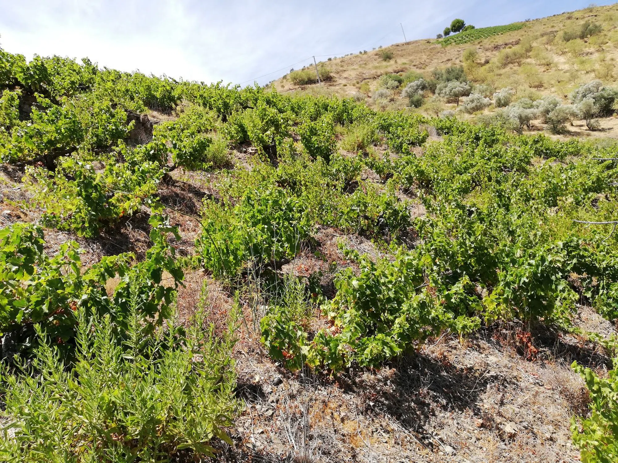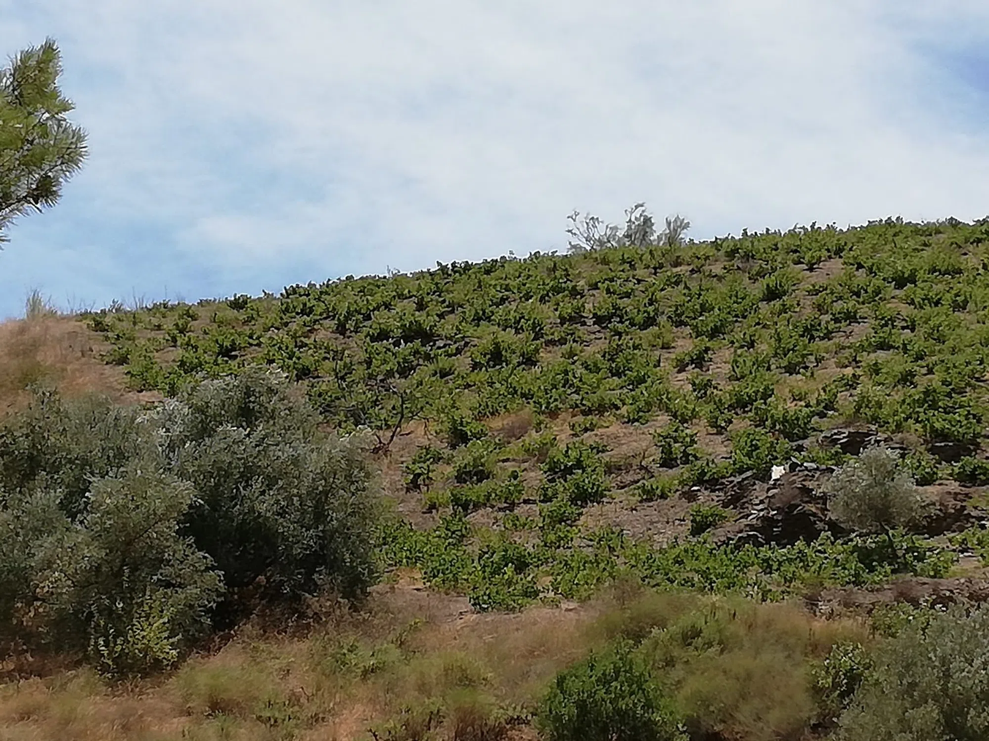 Con viñedos.