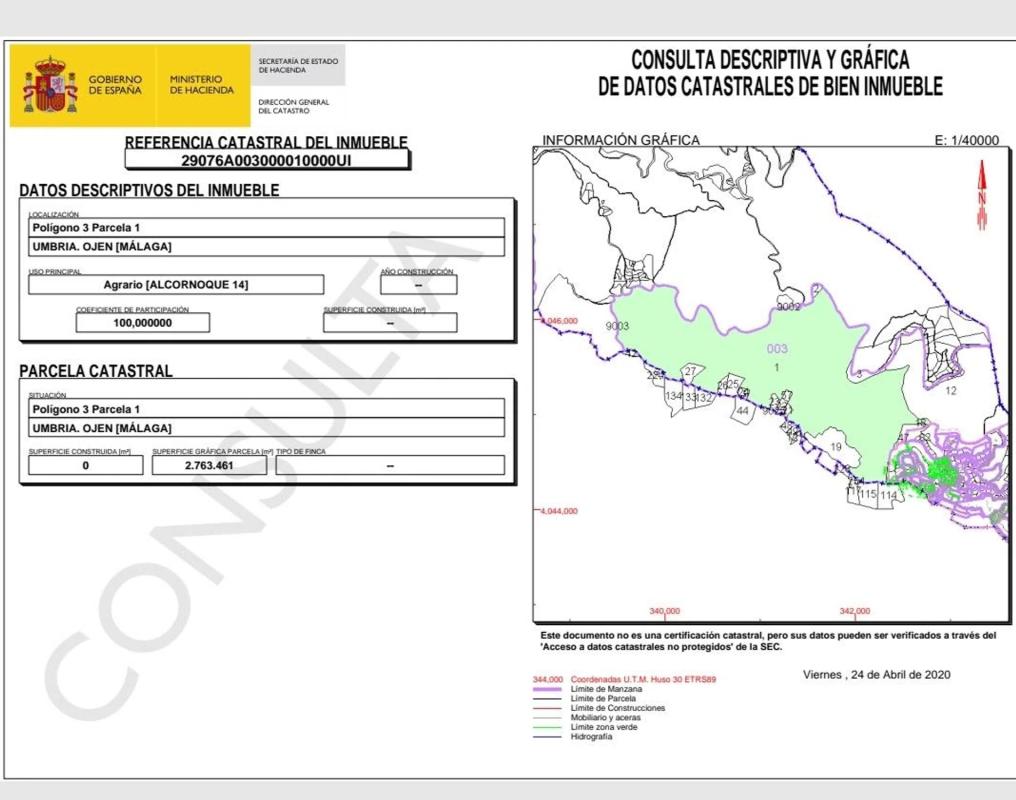 Se trata de un gran finca rustica situada entre Ojén y Marbella. Son 5 parcelas que suman 95282 metros, casi 10 hectáreas con diferentes calificaciones rústicas (huerta, regadío, almendro se...