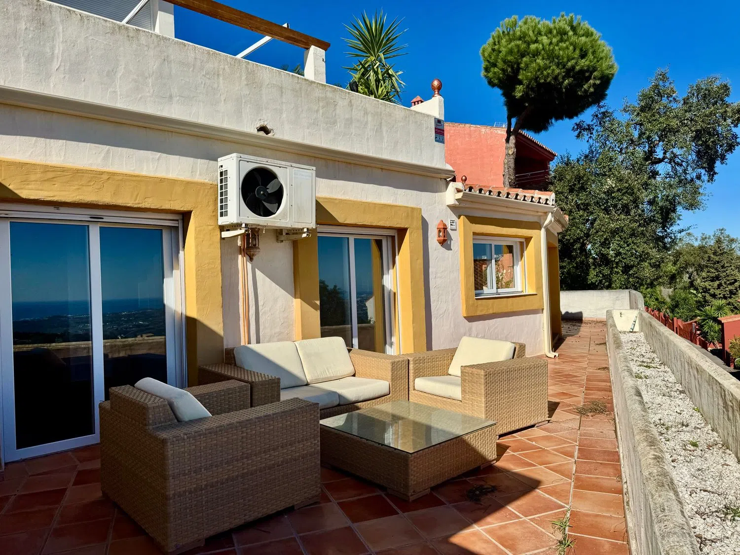 Descubre el encanto de vivir en la exclusiva zona de La Mairena, Ojén, con este espectacular flat que combina confort y elegancia. Situado frente al prestigioso Deutsche Schule Málaga, este inmueble en la primera planta de un edificio de tres niveles te ofrece una entrada individual para mayor privacidad. Con 122 m² construidos y 100 m² útiles, este flat ha sido recientemente pintado y acondicionado, listo para convertirse en tu nuevo hogar. Al entrar, serás recibido por un amplio hall que te conduce a un salón acogedor con chimenea, ideal para relajarte en las noches de invierno. La cocina-comedor está diseñada para ser el corazón del hogar, perfecta para compartir momentos inolvidables. Cada uno de los tres dormitorios cuenta con su propio baño en suite, garantizando comodidad y privacidad para todos los miembros de la familia. Disfruta de una hermosa terraza con vistas al mar, donde podrás deleitarte con el amanecer gracias a su orientación este. Además, el edificio cuenta con ascensor y una plaza de aparcamiento incluida en el precio. La comunidad ofrece una piscina y zonas verdes para disfrutar del buen clima. Todo esto por una comunidad de tan solo 250 euros al trimestre. ¡No dejes pasar esta oportunidad única! En cumplimiento del Decreto 218/ 2005, de 11 de octubre, por el que se aprueba el Reglamento de Información al Consumidor en la compraventa y arrendamiento de viviendas en Andalucía, se informa al cliente que los gastos notariales, registrales e impuestos que le sean de aplicación ( ITP ó IVA + AJD ) y otros gastos inherentes a la compraventa no están incluidos en el precio. Validez de precios sujeto a disponibilidades y confirmación por propietarios. Se considera que la descripción y los precios indicados para las propiedades a la venta en este sitio web son correctos. No obstante, la información que contiene esta web puede ser sujeta a errores u omisiones. Las propiedades pueden ser sujetas a cambio de precio, venta o retirada del mercado. Para esta propiedad se encuentran incluidos en el precio de venta nuestros honorarios profesionales de agencia, por lo que no abonará ningún gasto extra por gestión o asesoramiento inmobiliario.