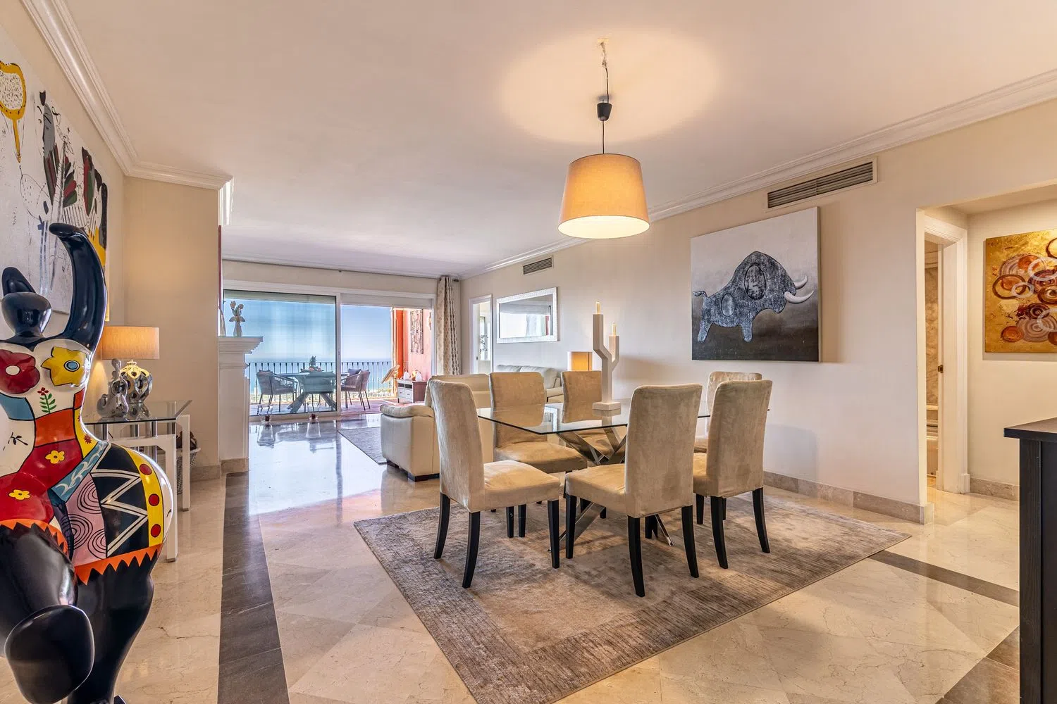 Apartamento en zona residencial con espectaculares vistas al mar y zona verde protegida. Totalmente equipado y buen estado de conservación en la mejor urbanización privada de la zona, con plaza de aparcamiento dentro del recinto, cámaras de seguridad circuito cerrado, jardines tropicales y piscina Infinity, hacen de esta propiedad un sitio ideal para vivienda permanente o vacacional. Ofrece 2 dormitorios en suite con armarios empotrados y baños totalmente equipados, amplia cocina con electrodomésticos, hall de entrada con un armario empotrado y su gran salón comedor de 40m2 con chimenea y salida a la terraza soleada con vistas espectaculares al mar y bosque protegido. Listo para entrar a vivir y disfrutar de la tranquilidad y naturaleza de la zona, a tan solo 8 minutos de Elvira Centro Comercial y playa La Víbora, 15 minutos a Marbella Ciudad, 20 minutos a Puerto Banús y 45 minutos a Málaga Aeropuerto Internacional. En la zona hay varios campos de golf con casa club y diferentes números de hoyos, colegios internacionales, club de tenis, y restaurantes con preciosas vistas. Para mas información no dude en contactar en horario comercial e informarle que tiene a su disposición documento informativo abreviado. VENTA EXCLUSIVA.