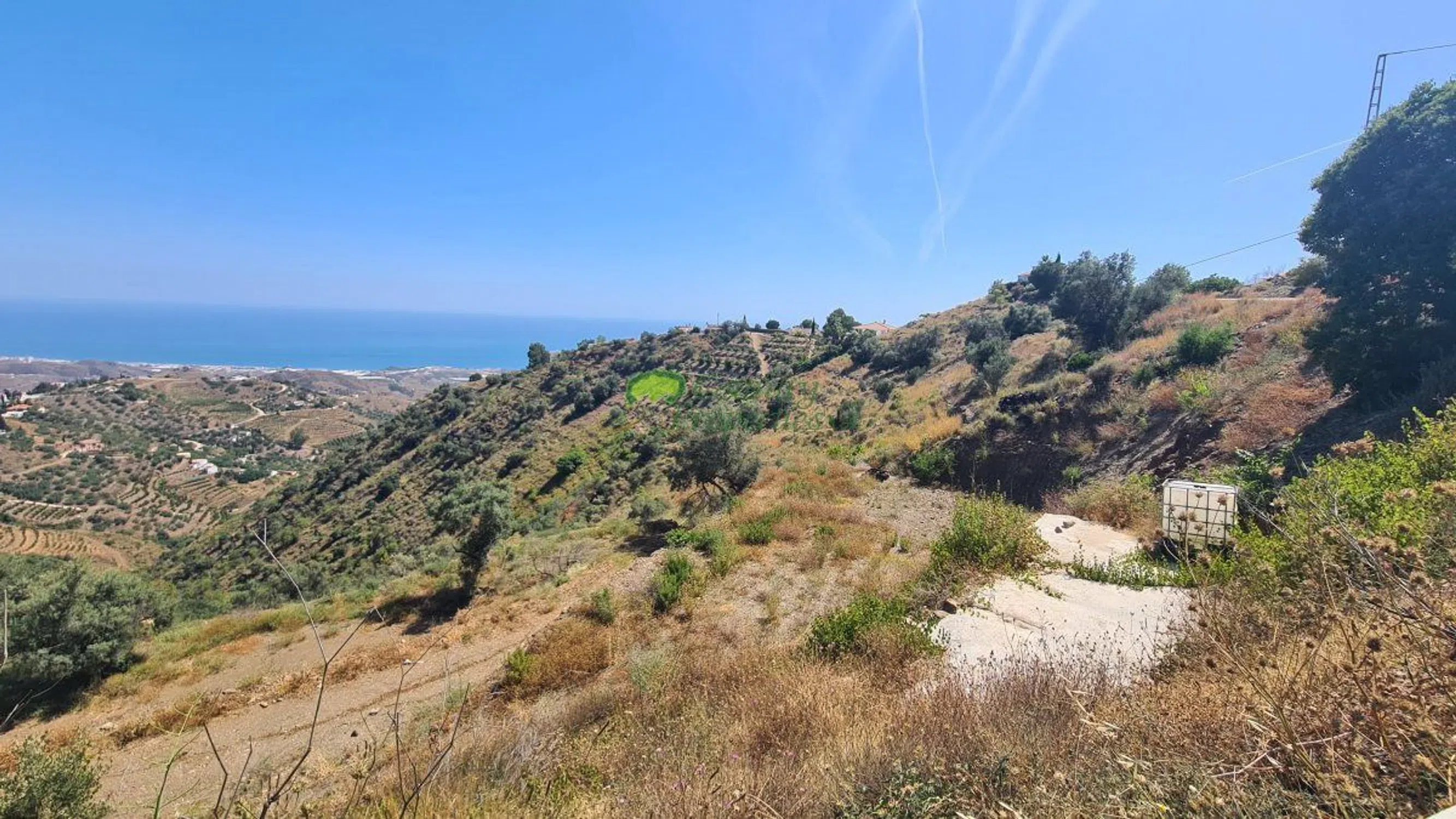 Parcela orientada al sur con bonitas vistas al campo y hacia el mar Mediterráneo. La parcela está situada en una posición elevada, justo al lado de un carril hormigonado y a 12 minutos en coche del pueblo de Sayalonga. La parcela tiene aproximadamente 2.914 m2 y ya hay electricidad conectada y el agua se suministra desde un pozo privado. Este terreno podría ser el lugar perfecto para plantar árboles frutales, arbustos etc. mientras disfruta del campo de Sayalonga.