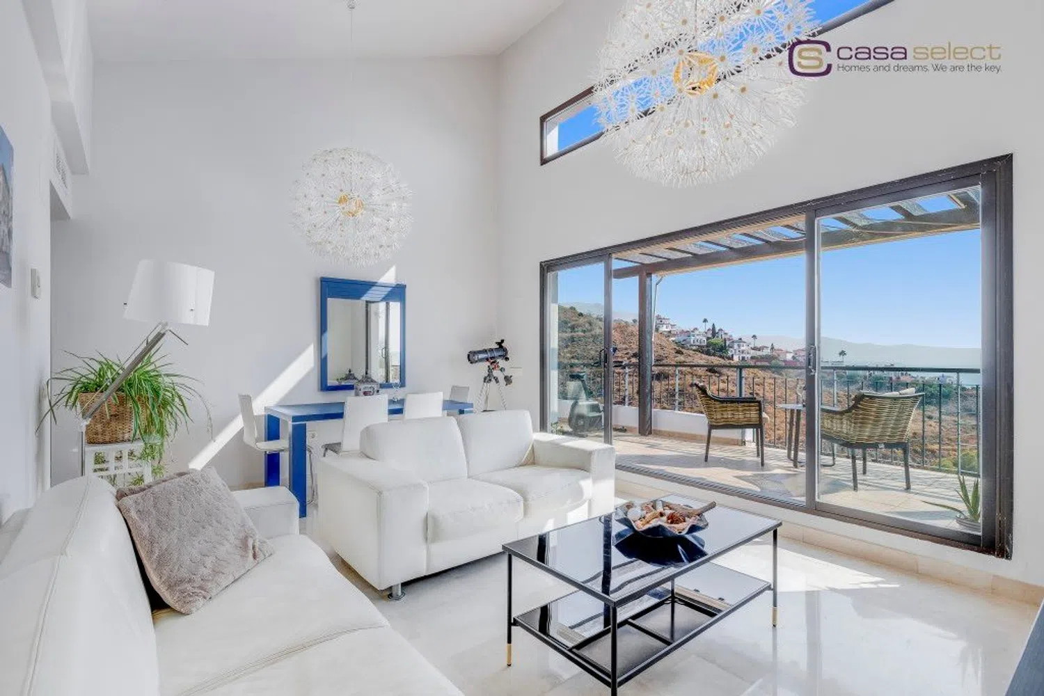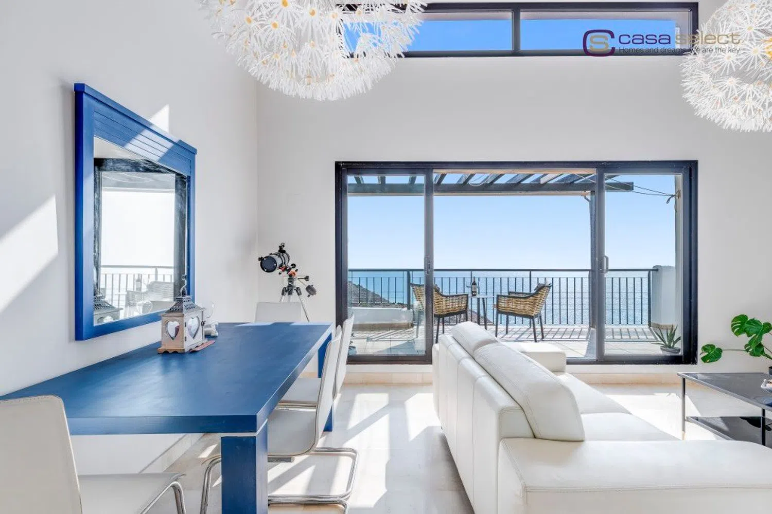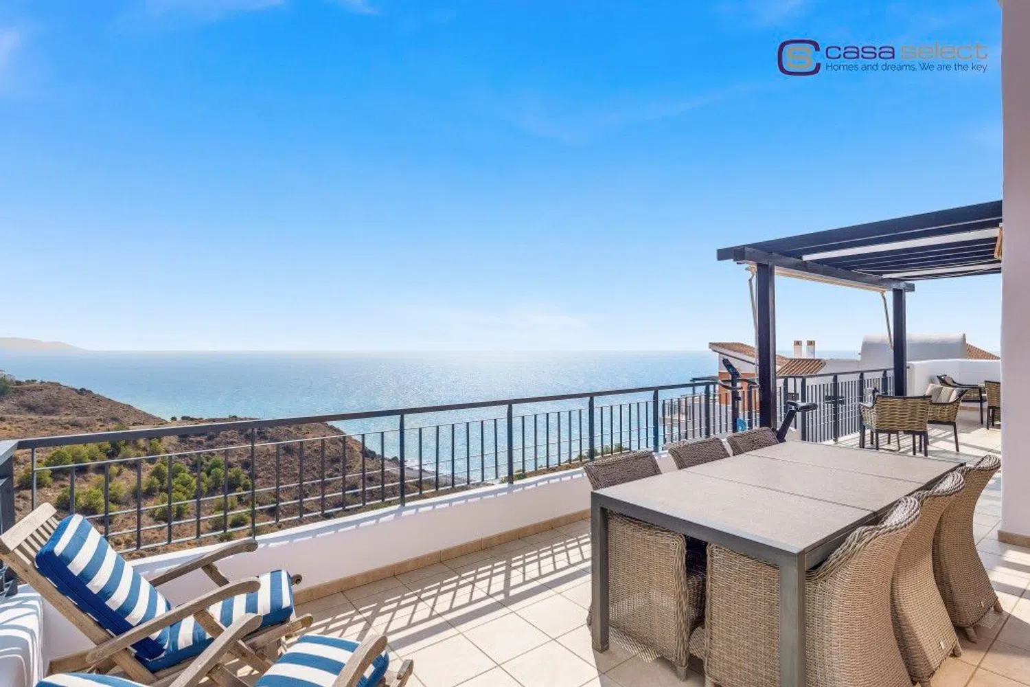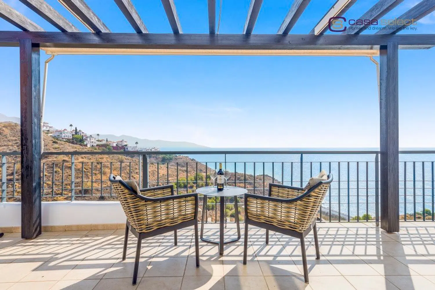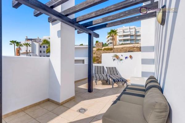 Este ático se encuentra en Vistamar, una exclusiva urbanización situada en la codiciada zona de Calaceite, a lo largo de la carretera costera que une Nerja y Torrox Costa. El complejo ha sido diseñado para que todos los apartamentos disfruten de impresionantes vistas al mar, creando un entorno ideal para aquellos que buscan lujo y tranquilidad. Además, la urbanización ofrece dos piscinas comunitarias con vistas al mar rodeadas de jardines bien cuidados, proporcionando el escenario perfecto para relajarse. Uno de los aspectos más destacados de esta propiedad es su gran terraza equipada con pérgola, orientada al este y al sur, garantizando sol desde primera hora de la mañana hasta última hora de la tarde. Desde aquí, se puede disfrutar de vistas panorámicas, que van desde las montañas hasta el mar Mediterráneo, con Nerja en la distancia. El interior del ático es luminoso, especialmente en el salón con techo de doble altura, que conecta a través de ventanas correderas con la terraza. La cocina está totalmente equipada con electrodomésticos. El apartamento tiene dos dormitorios dobles, ambos con armarios empotrados y 2 baños. El dormitorio principal tiene baño en suite con bañera y acceso directo a la terraza, mientras que el segundo baño es perfecto para uso de invitados o familiar. Incluye plaza de garaje y trastero en el mismo edificio con ascensor, lo que añade comodidad y seguridad. Además, la propiedad está equipada con aire acondicionado frío/calor para garantizar el máximo confort durante todo el año. Con un gran potencial de alquiler, esta propiedad también representa una fantástica oportunidad de inversión. El mobiliario está incluido en el precio, por lo que esta propiedad está lista para entrar a vivir o empezar a generar ingresos. EN EXCLUSIVA CON CASA SELECT!