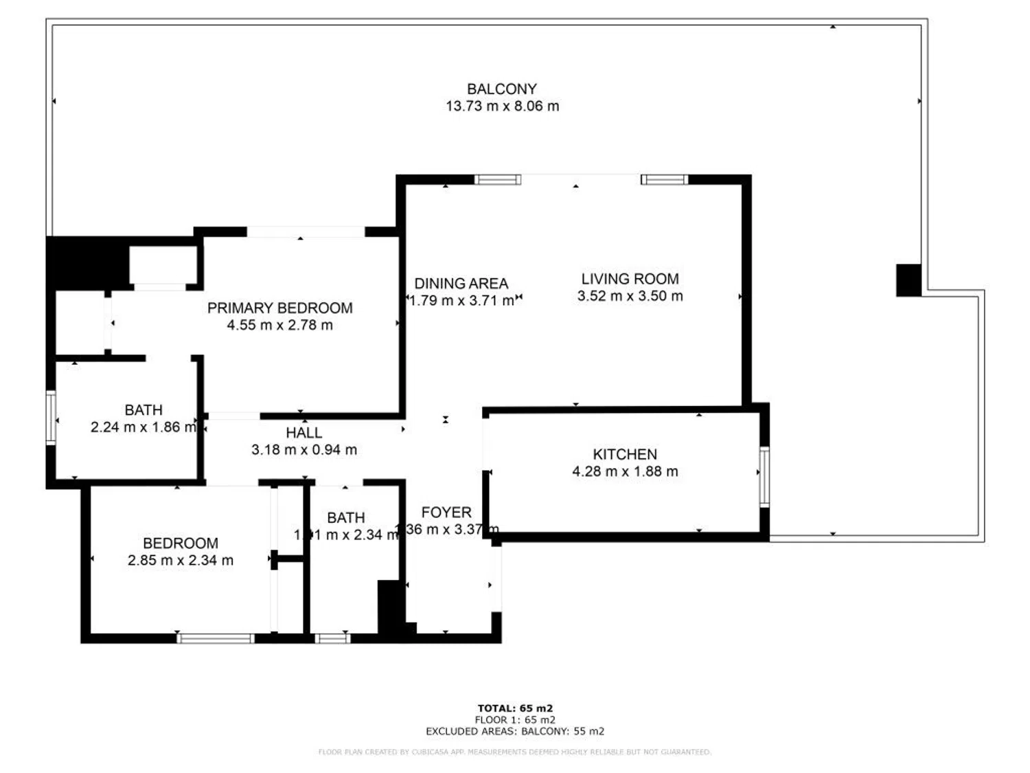 built square meters74 m²