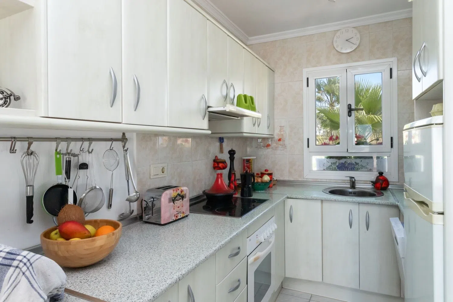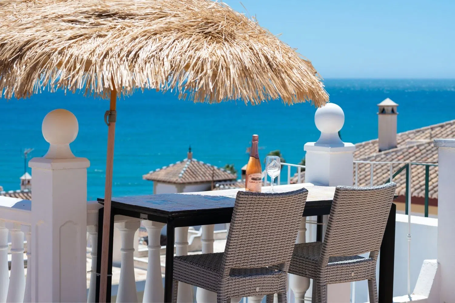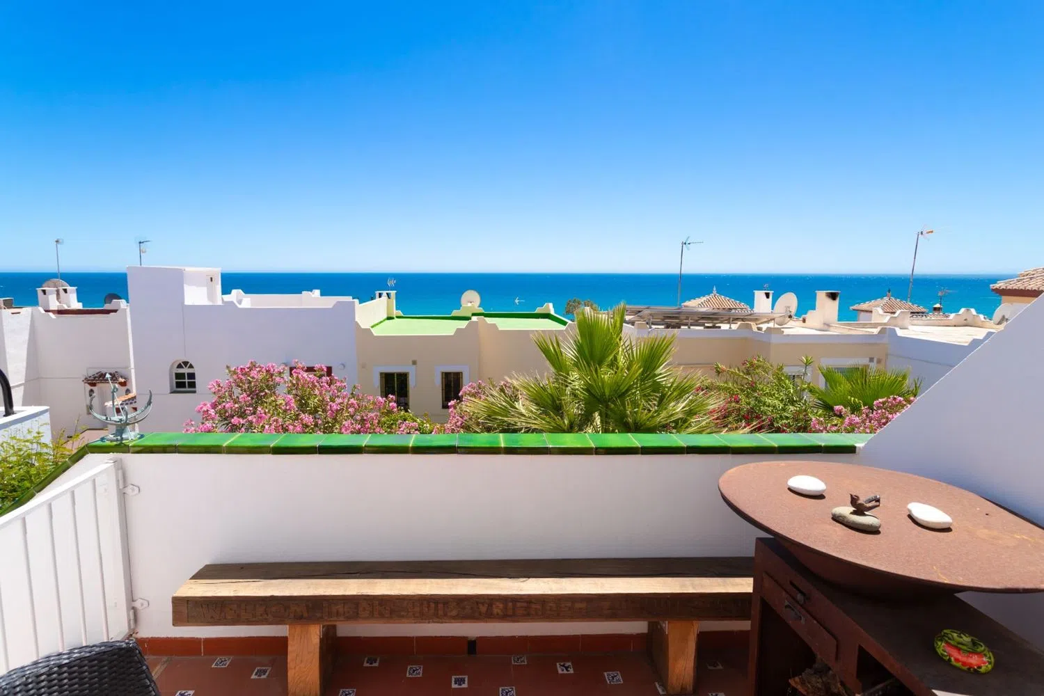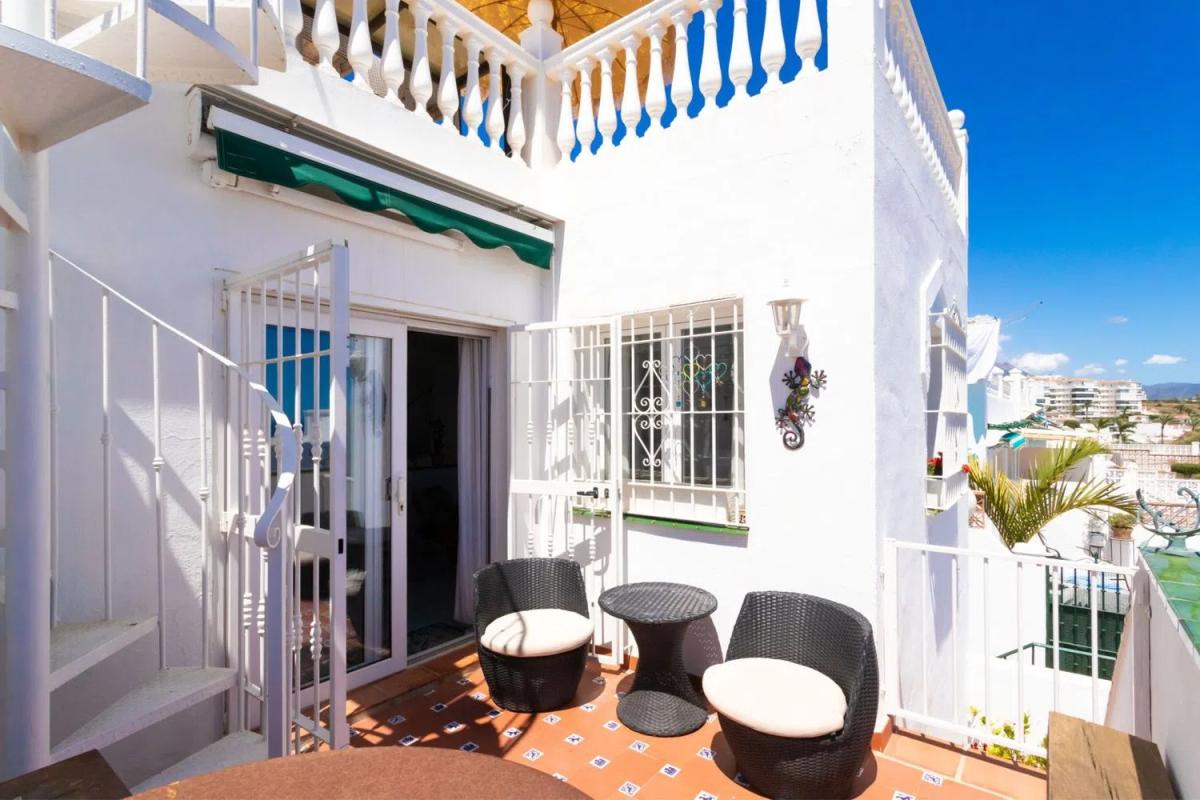Bienvenido a esta encantadora casa adosada con vistas de 360 grados al mar y a la montaña en la popular Urbanización Las Flores, El Penoncillo. Aquí se vive con el mar y la playa a sólo 300 metros y a poca distancia de una gran variedad de restaurantes y chiringuitos. La residencia se distribuye en 2 plantas más azotea. En la planta baja hay 3 amplios dormitorios, uno de los cuales tiene acceso directo al patio, un lugar perfecto para disfrutar de la sombra y del jardín exterior. En esta planta también se encuentra un baño completo. Arriba hay una cocina y salón de planta abierta, así como un aseo. En el salón hay una chimenea para las acogedoras veladas de invierno y en el exterior hay una maravillosa terraza orientada al sur con vistas al mar, un lugar perfecto para disfrutar del desayuno. Desde la terraza, una escalera de caracol conduce a la magnífica azotea con vistas al mar Mediterráneo, la playa y Nerja al este y Torrox Costa al oeste. Desde aquí se puede ver hasta Torre del Mar y Málaga en días despejados. ¡Este es verdaderamente un lugar para disfrutar del sol, las puestas de sol y pasar tiempo con amigos y familiares! Es posible alquilar un garaje y hay mucho aparcamiento gratuito al lado de la residencia. El autobús a Nerja o Torrox Costa, donde hay un autobús que conecta con Málaga, está a sólo 300 metros. El Penoncillo es famoso por su larga playa y todos los chiringuitos (restaurantes de playa) porque la comida se asa sobre una fogata en la playa y puedes sentarte con los pies en la arena y disfrutar del sol. ¡No pierdas la oportunidad de adquirir este fantástico adosado! ¡Contáctenos ahora para reservar su visita!