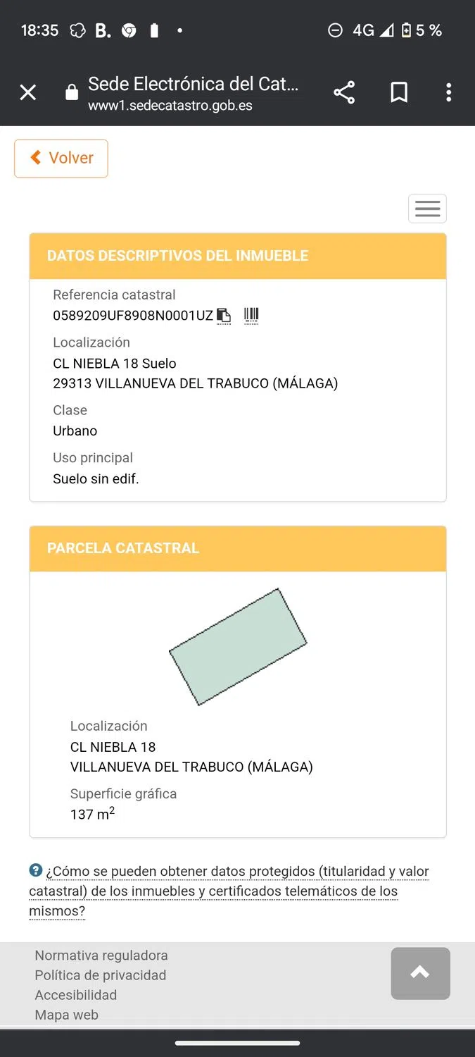 Se vende terreno en c/niebla, 18. Muy cerca del campo de fútbol del Trabuco. 137 metros cuadrados y preparado para edificar. Al precio se le debe añadir el 21% de IVA al ser de promotor. Ideal inversores / inversión por la cercanía a Málaga (30 min en autovía en coche). Gente realmente interesada, por favor. Abstenerse ofertas absurdas.