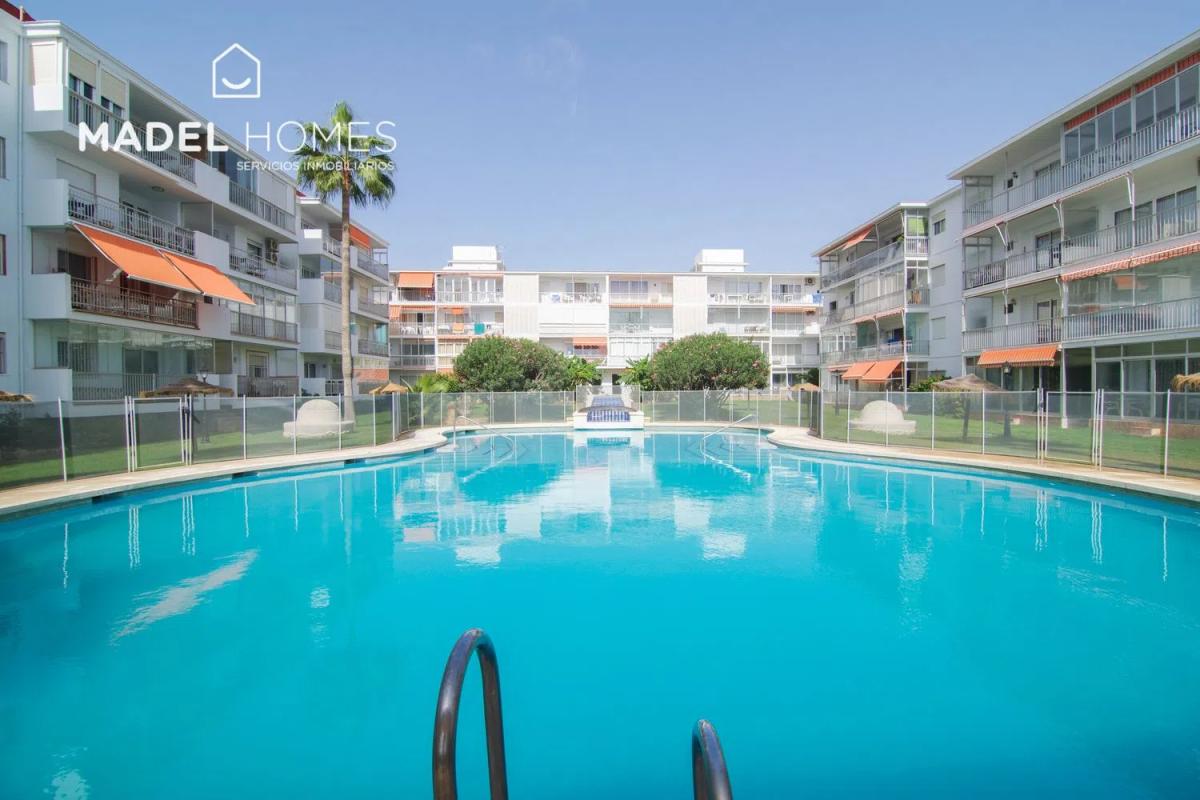 Piso en primera linea frontal al mar, en el residencial Porlamar, en la playa de Los Boliches. La vivienda se encuentra en primera planta con 2 amplias terrazas con vistas al mar y a la pis...