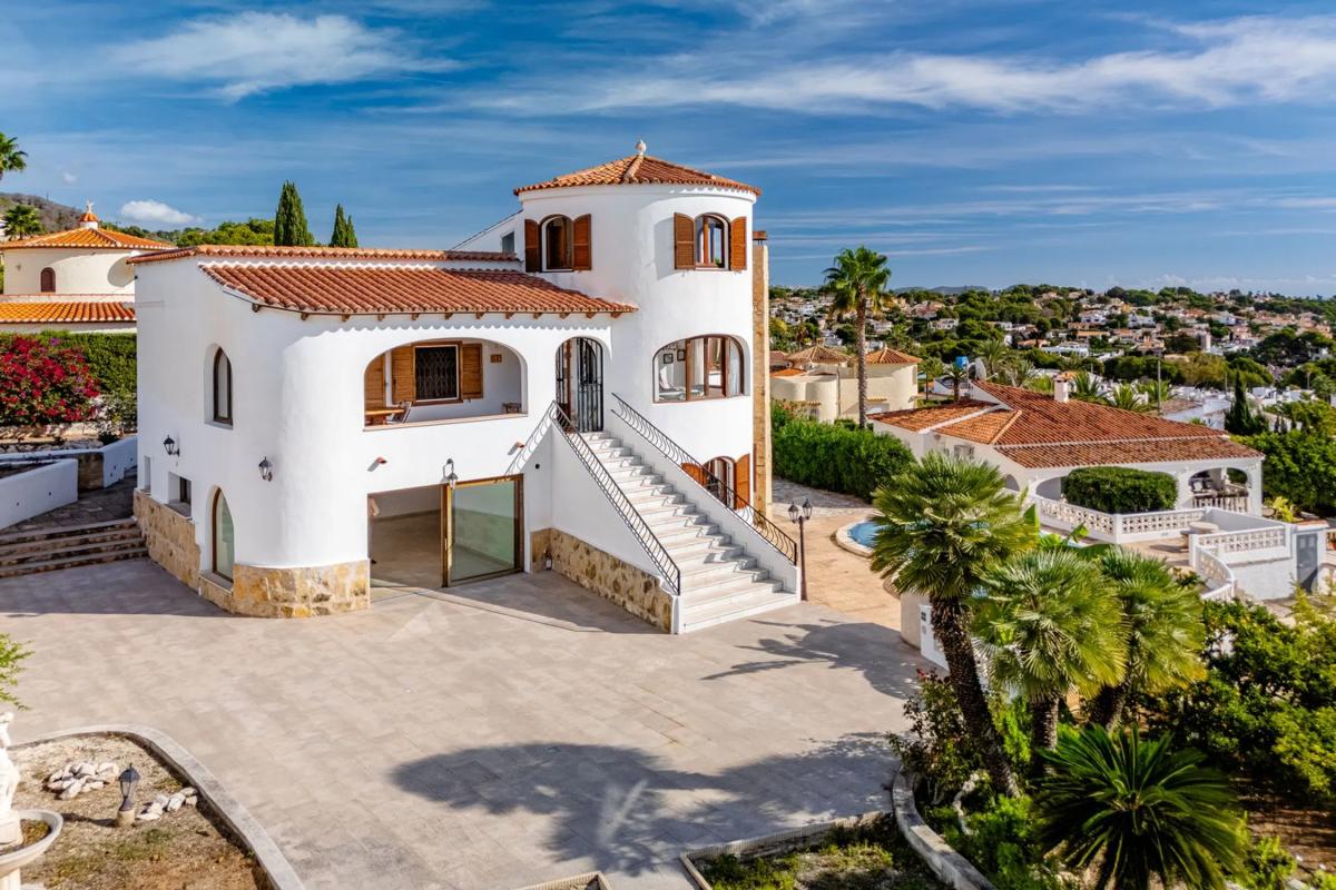 En venta preciosa villa de estilo mediterráneo con vistas al mar en Moraira (Costa Blanca, Alicante). Esta fantástica vivienda situada en lo alto de una colina con vistas abiertas, al Cabo M...