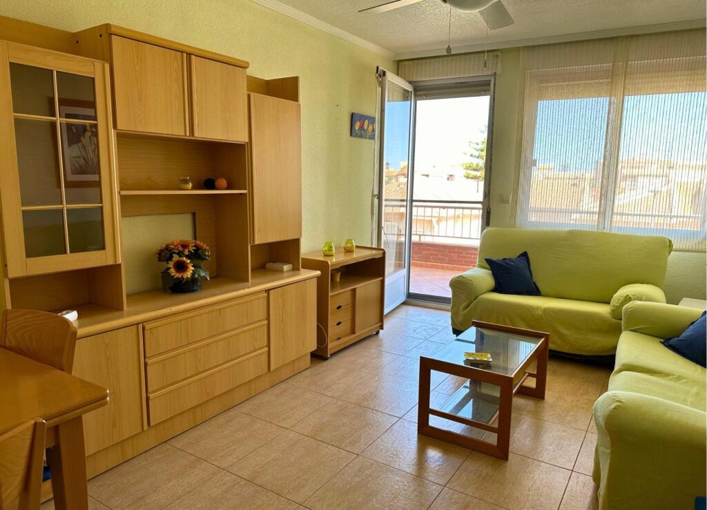 The living-dining room is spacious and bright, with access to a lovely large terrace, ideal for relaxing and enjoying the Mediterranean climate. It also has a renovated bathroom and a large, fully equipped kitchen.