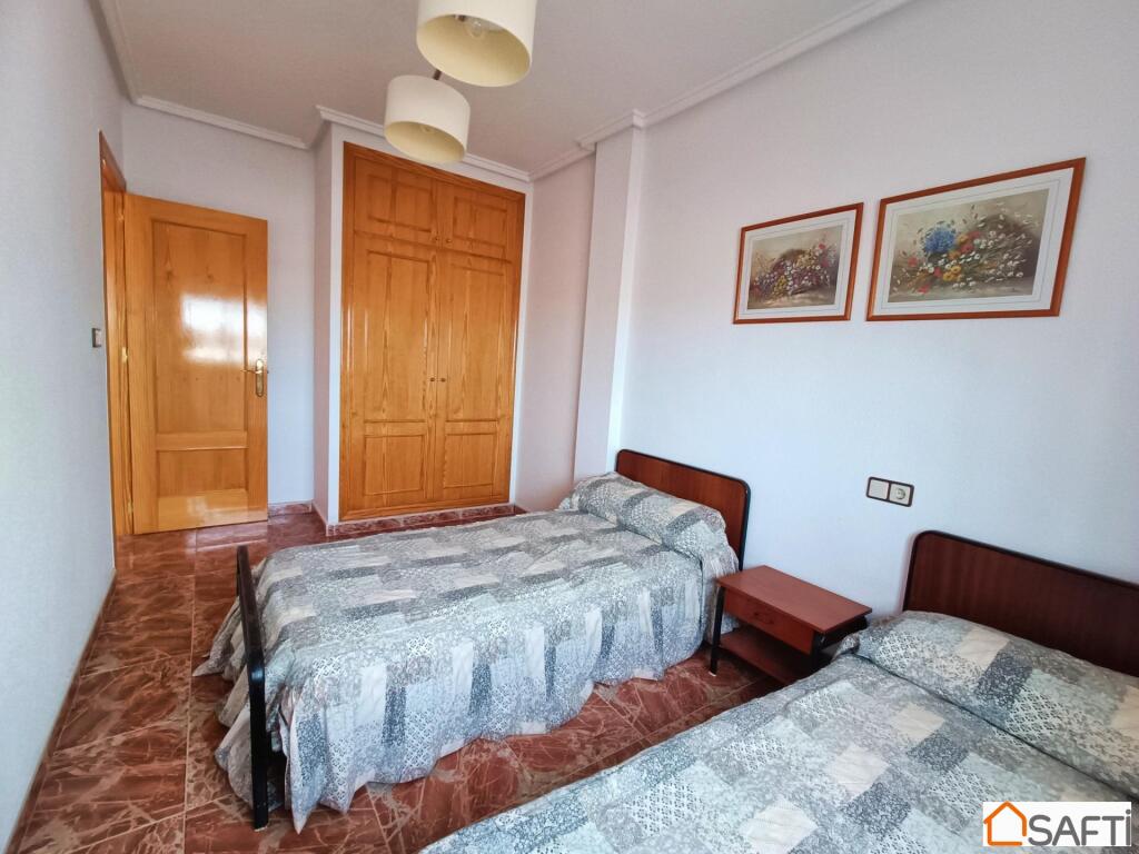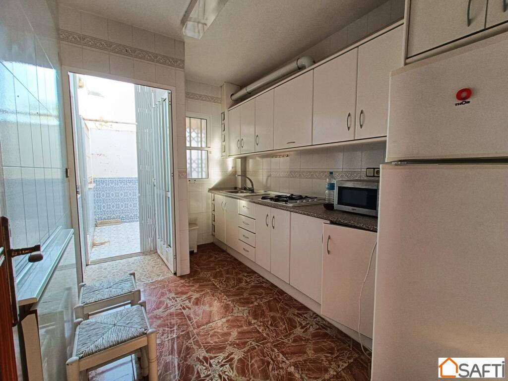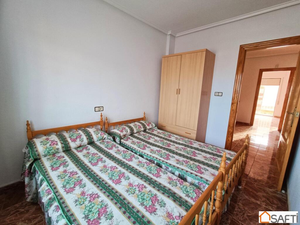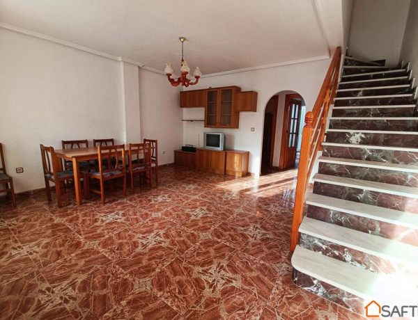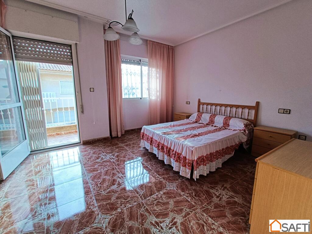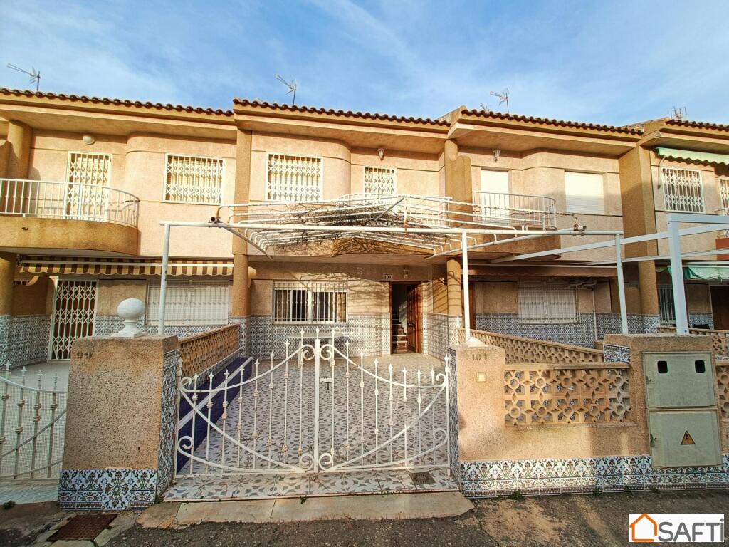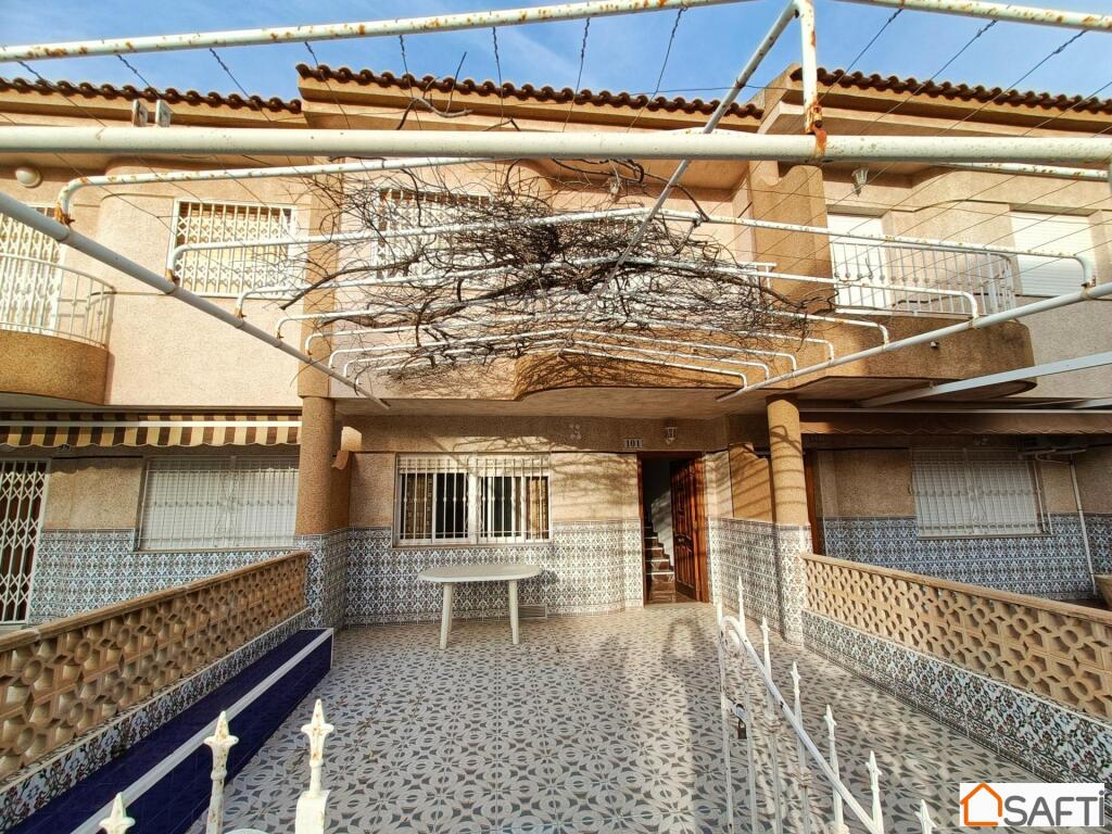 ¿Te gustaría vivir en un amplio chalet a solo unos pasos de la playa?, ¿Con un enorme porche donde tener espacio para relajarte en tu tiempo libre con la familia o los amigos? Pues te presento este maravilloso y amplio chalet de cinco (5) dormitorios solo a unos pocos metros de la playa, en una de las mejores zonas de Los Narejos. El chalet se compone dos plantas y un amplio porche en una parcela de cien (100) metros cuadrados, donde hay espacio suficiente para disfrutar del buen clima que ofrece la zona durante casi 300 días al año. La planta baja se compone de salón, cocina independiente, dos dormitorios y un aseo. En la primera planta encontramos tres dormitorios, un baño y un balcón.