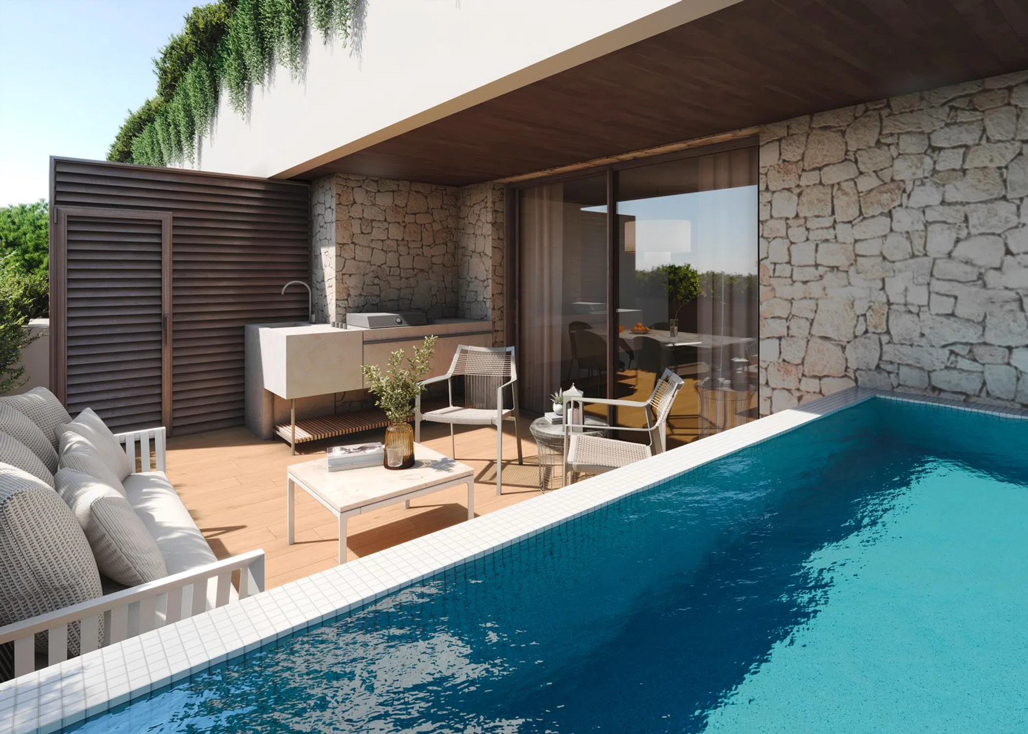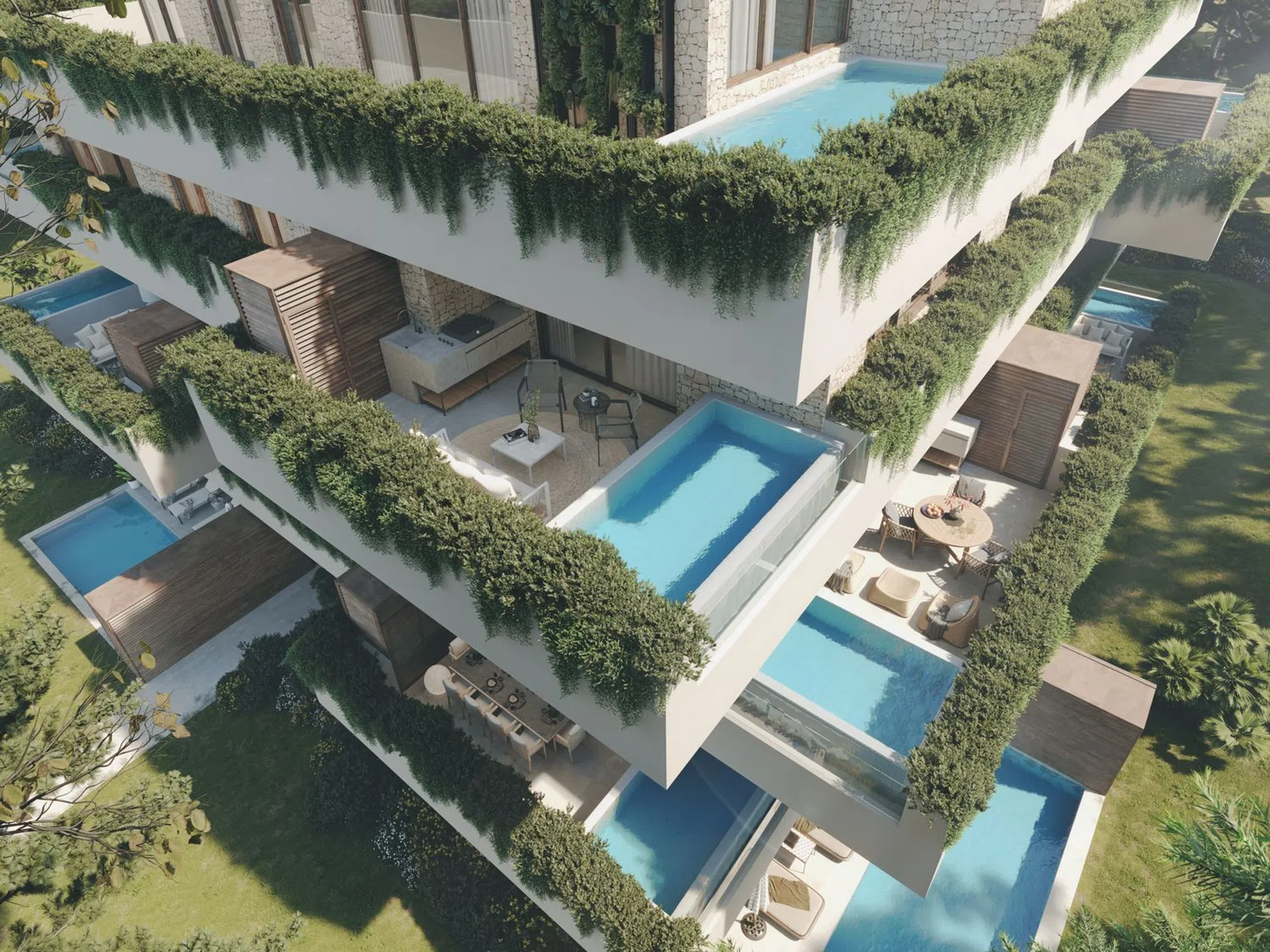 Discover exceptional real estate in Miatico, featuring a unique building where every residence is treated as a penthouse. Thanks to the ingenious layout, each home ensures maximum privacy and comes with expansive terraces, a swimming pool, and a barbecue area. This type of property is unparalleled in the Region of Murcia.