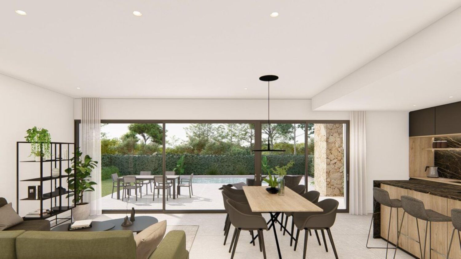 VILLAS DE OBRA NUEVA EN MOLINA DE SEGURA Villas de obra nueva de una sola planta con 3 dormitorios, 2 baños, cocina americana con amplio salón, armarios empotrados, terraza, jardín privado con piscina y plaza de aparcamiento. Villas situadas en urbanización privada con seguridad 24h/7. Entorno con mucha naturaleza y montañas. Centros comerciales a 11 km (IKEA, tiendas, supermercados, restaurantes... ) Supermercado a 350 m. Campo de golf a 7 km. Parque acuático a 12 km. 2 colegios internacionales a menos de 20 min en coche. Centro de Murcia 14 km. Playas de Murcia a 45 min y Orihuela Costa a 50 min. Aeropuerto de Murcia a 30 min y aeropuerto de Alicante a 45 min. Perfecta ubicación para disfrutar de la vida española todo el año.