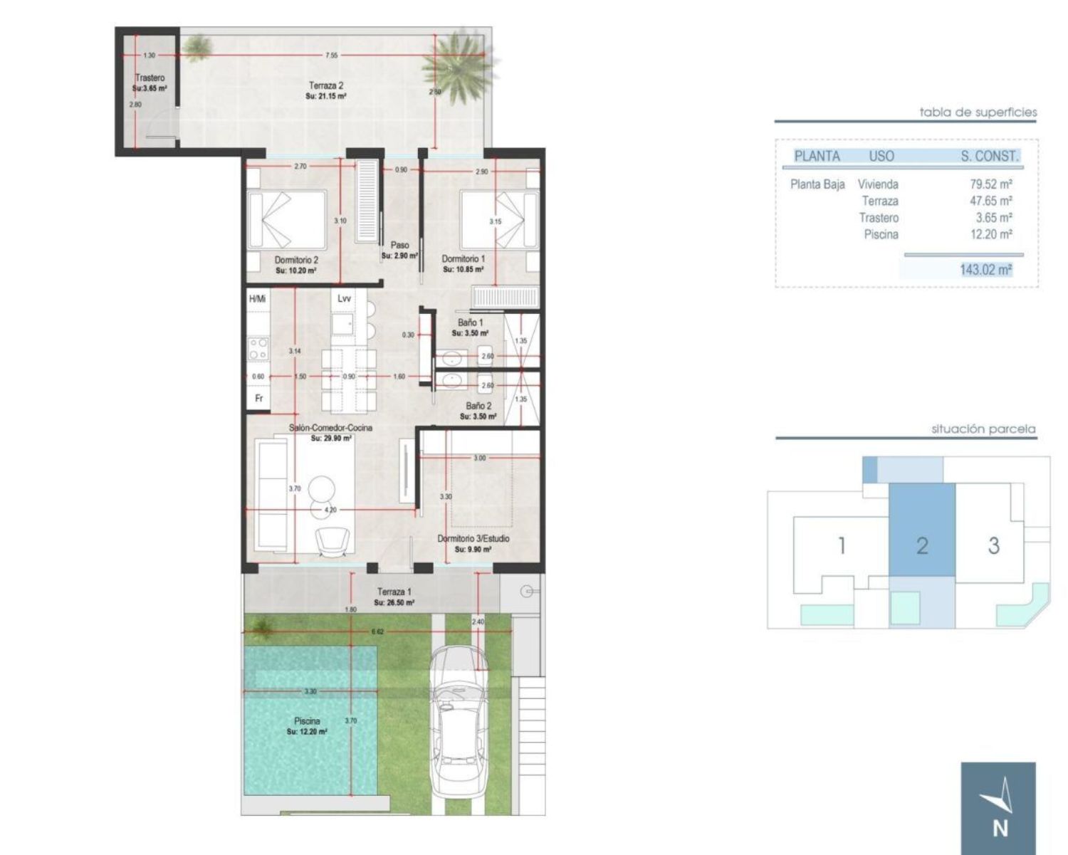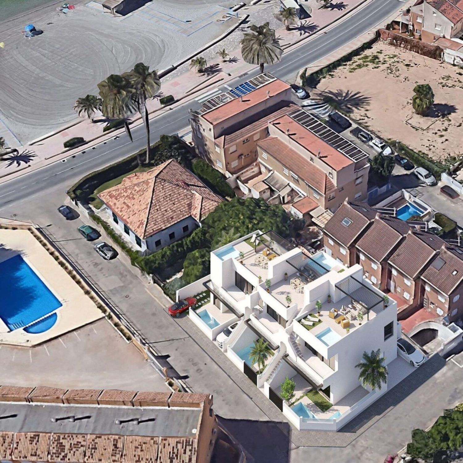 BUNGALOWS DE OBRA NUEVA EN SAN JAVIER Proyecto de obra nueva con solo 6 bungalows, 3 en planta baja y 3 en planta alta, todos con piscina privada en San Javier, a menos de 100m de la playa. Modernos bungalows de nueva construcción con 3 dormitorios y 2 baños, cocina americana con amplio salón, armarios empotrados, terraza, plaza de aparcamiento privado. Las viviendas de planta baja tendrán jardín trasero y delantero con piscina y las de planta alta tendrán solarium con piscina. San Javier está cerca de todos los servicios con fácil acceso a la playa, deportes acuáticos, tiendas y la red de transporte. Aquí se puede disfrutar de todas las instalaciones que San Javier tiene para ofrecer, como las tiendas locales, bares y restaurantes, así como estar cerca de centros comerciales, el aeropuerto de Murcia y todos los hermosos lugares que se encuentran a lo largo del Mar Menor. El aeropuerto de Corvera/Murcia está a 30 minutos y el aeropuerto de Alicante a 45 minutos.