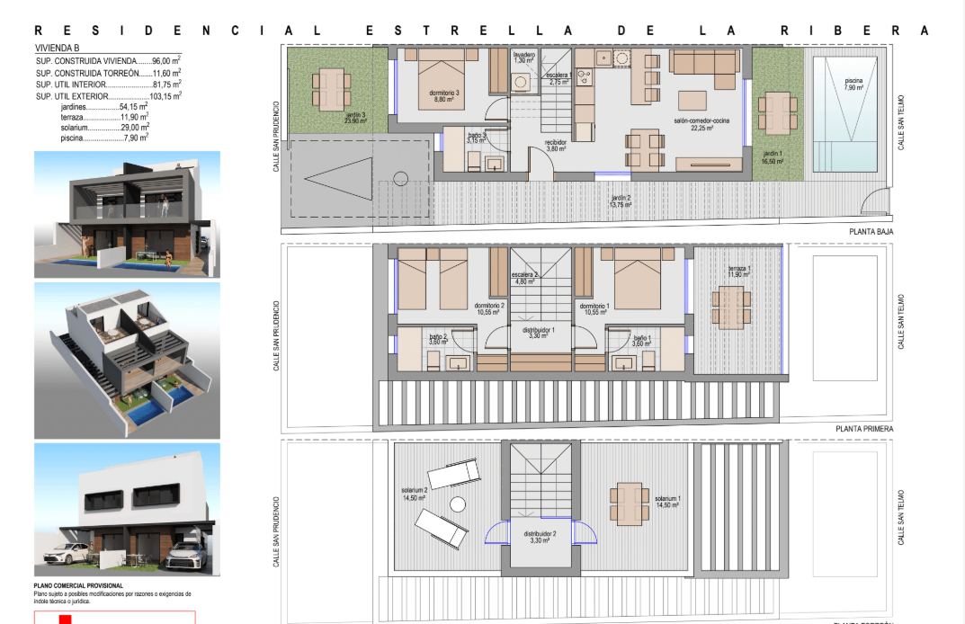 Each villa features a thoughtfully planned layout across two floors plus a spacious private rooftop solarium, perfect for relaxing under the sun or enjoying outdoor gatherings. The villas include: