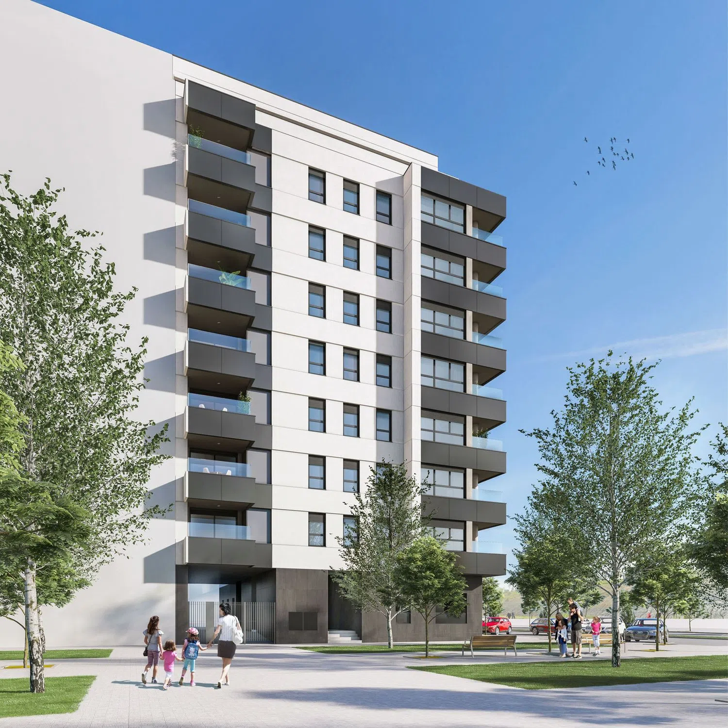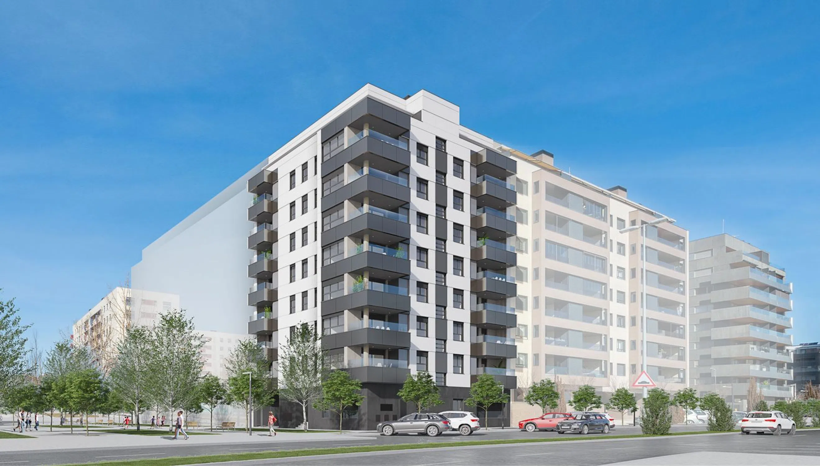 The building, with eight floors, is part of a residential complex featuring a private garden area exclusive to residents. It offers properties with 1 to 3 bedrooms on the ground floor and 2 to 3 bedrooms from the first to the seventh floor and penthouse level. The day areas and terraces enjoy privacy, broad views, and open towards the sunniest orientation. Its high-quality construction aims to provide maximum comfort and energy efficiency.