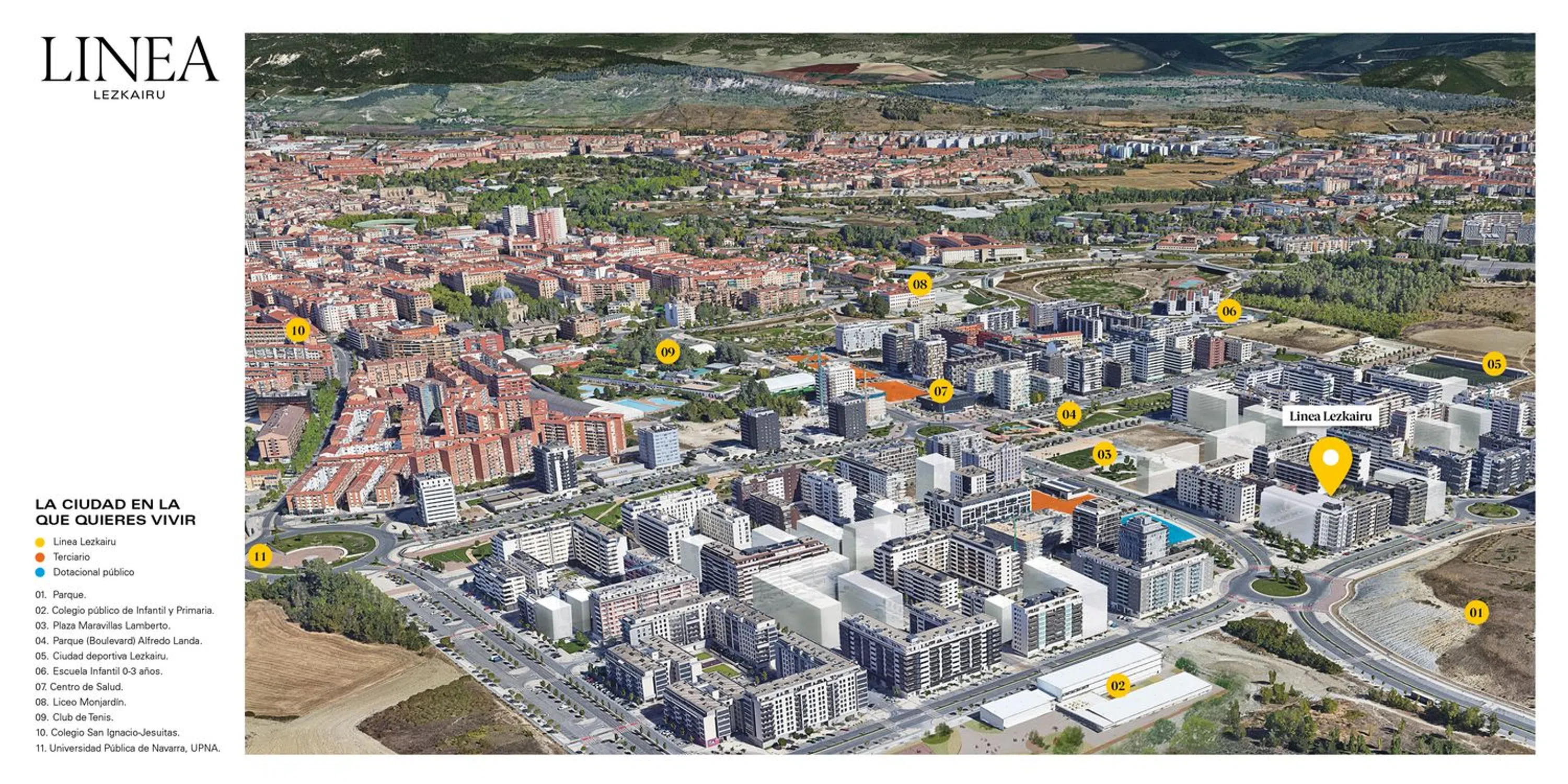 Already under construction, with delivery expected in 2027, this new development is located in the Lezkairu district of Pamplona, a privileged location near a vast park, offering residents unique conditions of light and views. The spacious terraces face the natural space, ensuring uninterrupted panoramic views of the southern area of Pamplona. The high construction standards and comprehensive facilities make it an excellent choice for living and investing in Lezkairu, a neighborhood that continues to grow in services and amenities.