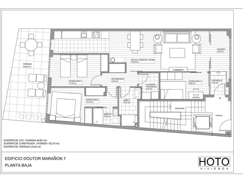 OBRA NUEVA EN DOCTOR MARAÑÓNEdificio totalmente rehabilitado, en la calle Doctor Marañón, entre la Plaza mayor y el mercado de abastos, situado en una zona emblemática del casco antiguo de tránsito peatonal, dispone de todos los servicios en sus inmediaciones.Portal sin barreras arquitectónicas, con video portero con teclado y clave de acceso, sin llave. Ascensor de última generación con capacidad para seis personas.Una vivienda por planta y vistas a dos fachadas, Balcón a fachada principal.Bajo*: superficie útil 90,60 m2, cocina americana con salón-comedor, dormitorio suite con baño, dos dormitorios secundarios, baño y zona de lavandería. Terraza de 24 m2. (se accede desde dormitorio suite, dormitorio secundario y cocina).Plantas 1, 2, 3. *: superficie útil 94,80 m2, cocina americana con salón-comedor con acceso a balcón, dormitorio suite con baño, dos dormitorios secundarios (uno con balcón), un baño y zona de lavandería.Cuarta planta -* Estudio: superficie útil 48,80 m2, cocina americana con salón-comedor, dormitorio con balcón, baño y zona de lavandería.-Cuarta planta - Dúplex: superficie útil 105,40 m2. planta baja - superficie útil 43,25 m2 (cocina americana con salón-comedor y balcón y despensa). Planta alta - superficie útil 62,15 m2 (dormitorio suite con baño y vestidor, dos dormitorios secundarios (uno con vestidor), un baño y zona de lavandería).Las viviendas cuentan con preinstalación de sistema inteligente de hogar digital. Puerta de acceso principal blindada. Calefacción y agua caliente de gas ciudad con contador individual, radiadores toalleros en los baños. Trasteros con toma de luz y corriente conectadas a las viviendas. Griferías termostáticas. Carpintería interior lacada en blanco, armarios empotrados forrados y divididos. Lavandería con conexión para Lavadora y secadoraPlanta sótano: trasteros, zona de contadores y cuarto de limpieza.VIVIENDAS DESDE 185.000 €Consultar planos y memoria de calidades.En Cuarto Hache contamos con un asesor financiero que buscará un producto a tu medida. Sin estar vinculados a ninguna entidad bancaria, buscará la mejor opción para cada operaciónLas imágenes de los espacios se incluyen solamente a efectos ilustrativos de los materiales y acabados referidos, en ningún caso representan la imagen final de las viviendas de la promoción.