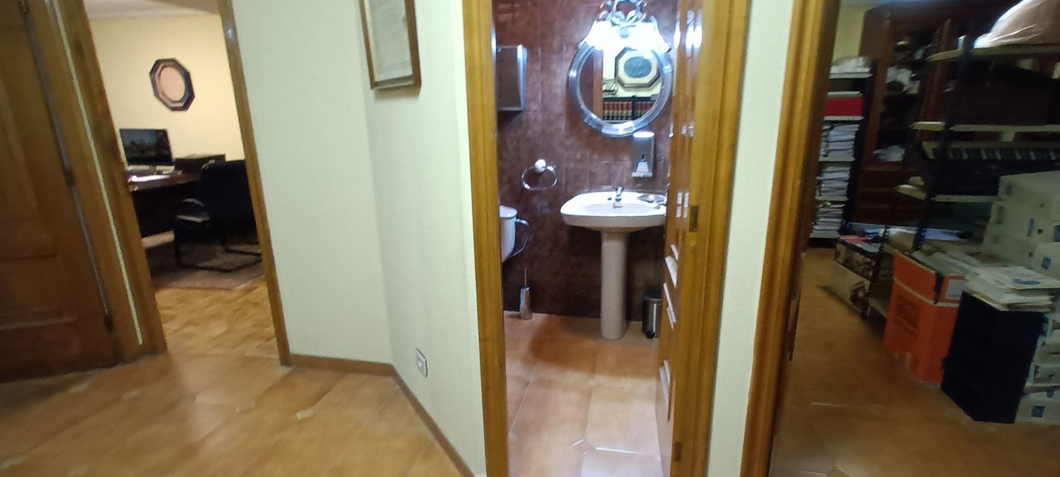 Local situado en una Entreplanta, con acceso por portal independiente a las viviendas del edificio, destinada a oficinas y ubicada en pleno Centro Comercial y de Negocios de Vigo. La oficina consta de dos despachos amplios, con ventanas hacia la calle María Berdiales, un aseo, un archivo y una zona abierta de recepción. Todas las estancias están separadas con tabiques. Suelos de los despachos de parquet, resto de plaqueta. Puerta de entrada de seguridad.