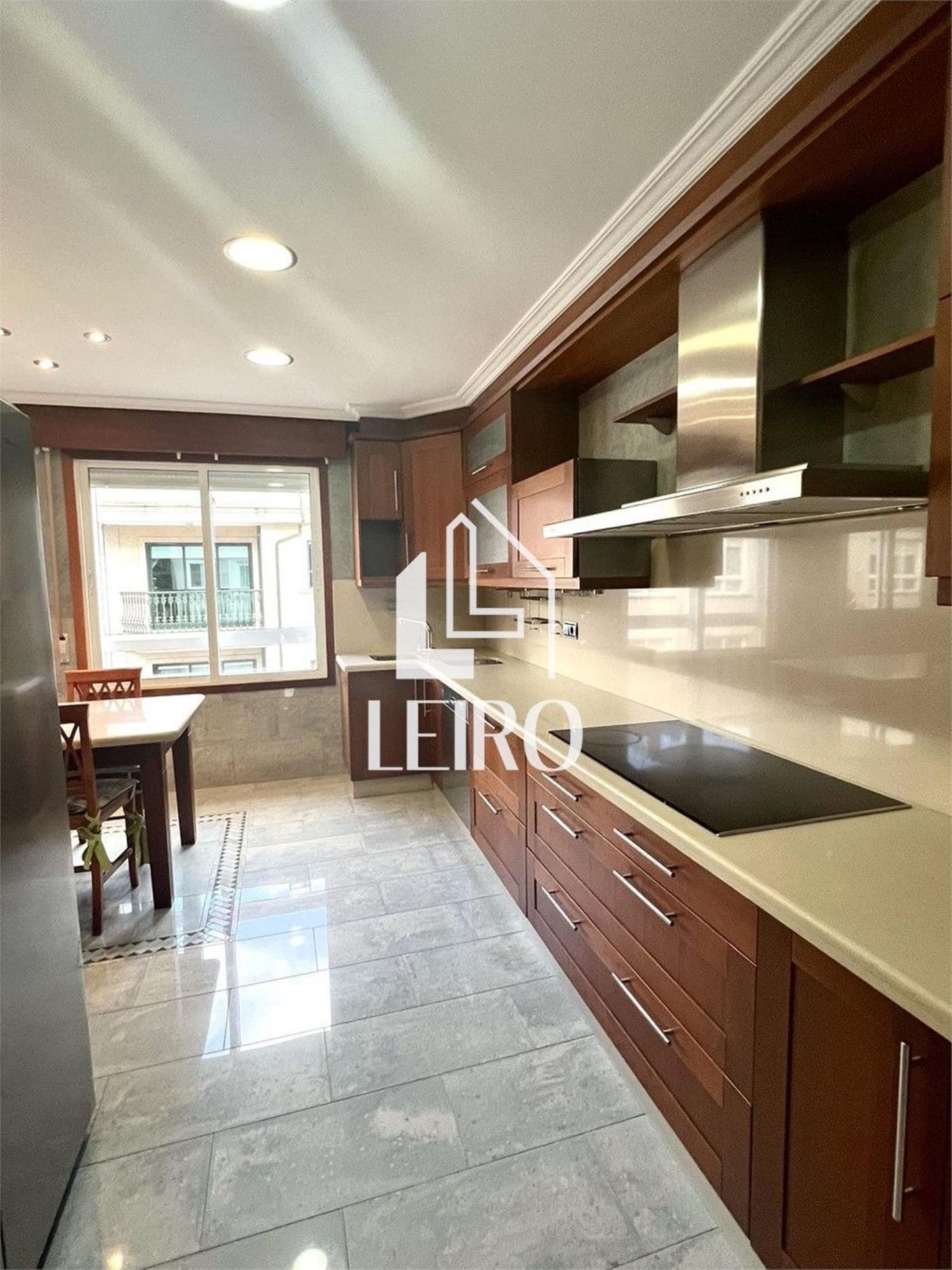 Piso 3 dormitorios con Trastero Céntrico!LO MÁS DESTACADO DE ESTE INMUEBLE es la amplitud de su cocina, su ubicación y su luminosidadSe trata de una vivienda de 104 m2 de superficie construida, con trastero, ubicada en un edificio con ascensor del año 1993.DISTRIBUCIÓN DEL INMUEBLE: hall de acceso, salón – comedor amplio con ventales, cocina independiente muy amplia, 3 dormitorios y 2 baños, cuarto para termo acumulador en hall, lavadero en dormitorio.SUS CALIDADES: Suelo de tarima; Puertas de paso de madera; Carpintería exterior de aluminio; Calefacción y Agua Caliente Eléctrica; Armarios empotrados y vestidor en Dormitorio principal; 2 baños (bañera en los dos); Ascensor; Piso soleado; Trastero amplio en planta baja; Vivienda exterior. Electricidad, cocina y saleros renovados del año 2012.LA ORIENTACIÓN es Este en su fachada principal y Oeste en su fachada posterior.UBICADA en una zona a dos minutos andando del centro bien ubicada con servicios a pie de la vivienda.Tip de Leiro Inmobiliaria y Financiera S. L. :" La vivienda perfecta para familias ".¡ Os invitamos a visitarla!