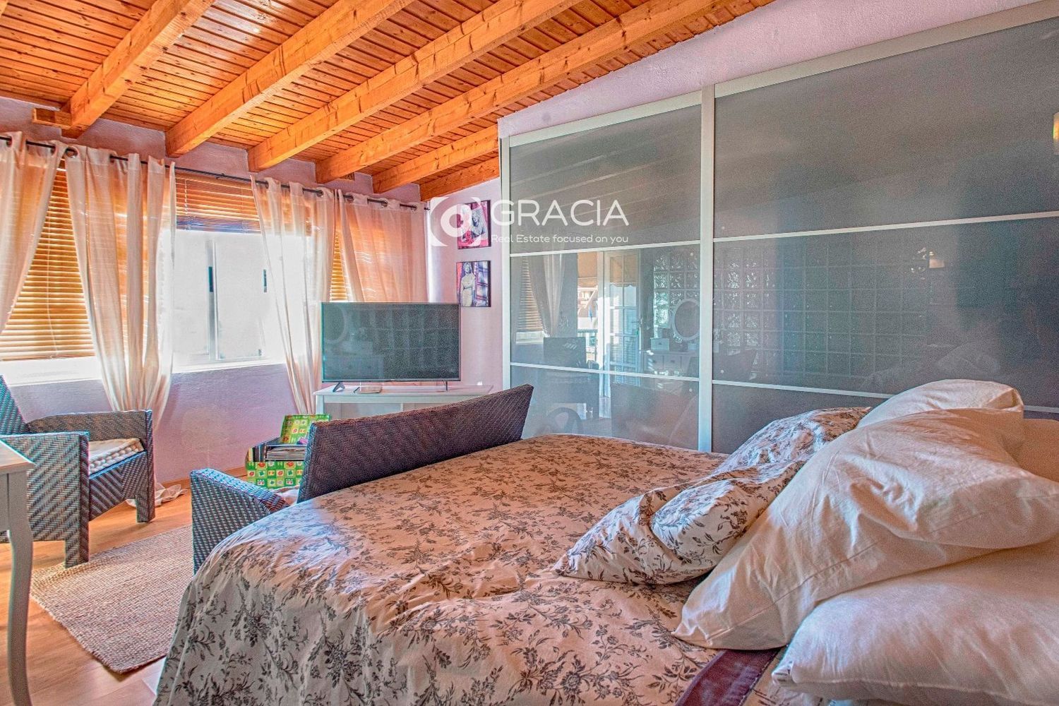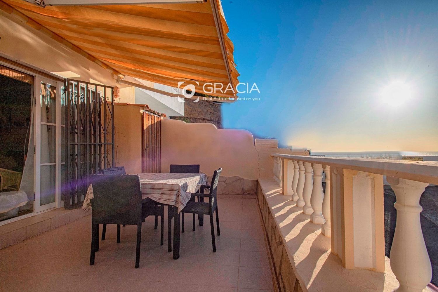 San Eugenio Alto pertenece al municipio de Adeje, en la isla canaria de Tenerife. Representa uno de los tres principales destinos turísticos de la isla de Tenerife, junto con Playa de las Américas-Los Cristianos y Puerto de la Cruz. Cuenta con una amplia oferta de hoteles, apartamentos y apartahoteles, con centros comerciales, bares, restaurantes y tiendas, bancos, parques públicos, zonas de juegos infantiles, instalaciones deportivas, farmacias, centro social, centros de spa, oficina de correos, una sede de Protección Civil, una comisaría de Policía Nacional. Siam Park se ha consolidado como el mejor parque acuático del mundo según Trip Advisor Con sus increíbles escenarios inspirados en la arquitectura tailandesa. El apartamento está situado muy próximo al Parque Acuático Siam Park, cerca del acceso a la autopista del sur y a pocos minutos en coche de las principales playas y centros de ocio de Adeje.Está ubicado en una comunidad tranquila, no cuenta con piscina comunitaria con lo que los costes de comunidad son mínimos. Es un Dúplex adosado con muchísimo encanto por sus vistas y su distribución. Se accede a través de una agradable entrada tipo porche, la planta primera tiene un baño con ducha, una amplia cocina abierta amueblada y equipada y un salón con acceso a la amplia terraza con vista panorámica al mar. En Esta planta se ha hecho un pequeño dormitorio adicional, gracias a la amplitud del salón, se podría renovar y devolverle ese espacio al salón o bien dejarlo tal y como está.La terraza permite disfrutar del tiempo, hay espacio suficiente para poder hacer comidas y desayunos, y la vista es panorámica mar, se disfruta de luz este- oeste todo el día y de las magnificas puestas de sol y la cercana isla de La Gomera.A través de una escalera de caracol accedemos a la planta superior, al dormitorio principal con baño en suite, y plato de ducha. tiene un amplio ventanal y mucha luz y las mismas vistas que disfrutamos desde la terraza.La propiedad cuenta con un garaje independiente para un coche pequeño. Y un trastero disponible en un espacio común compartido con los vecinos de mutuo a cuerdo y autorización de la comunidad. En la parte superior de la propiedad hay espacio para aquellos que deseen ampliar la vivienda, múltiples opciones de ampliar, la propiedad es una interesante vivienda tanto como para alquiler vacacional como para quienes buscan un lugar para vivir.Los alquileres vacacionales de propiedades similares de la zona están en torno a 90€/110€ noche de precio medio y siempre hay demanda durante todo el año. La propiedad se vende amueblada y en muy buen estado, lista para entrar a vivir.Real Estate Focused on you.